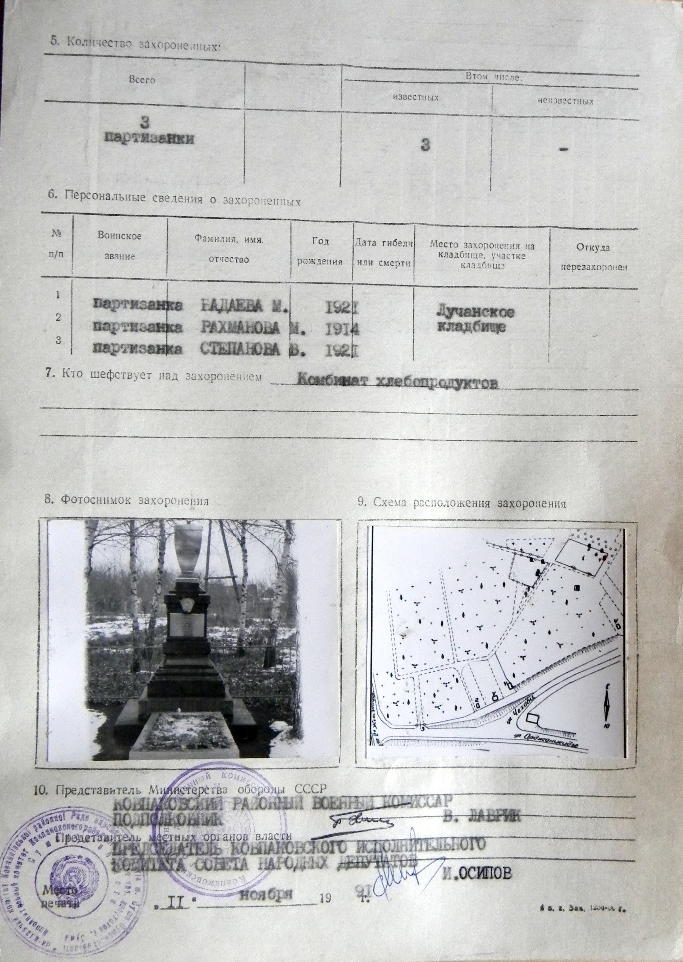 Могила подпольщиц на Лучанском кладбище в г. Сумы
