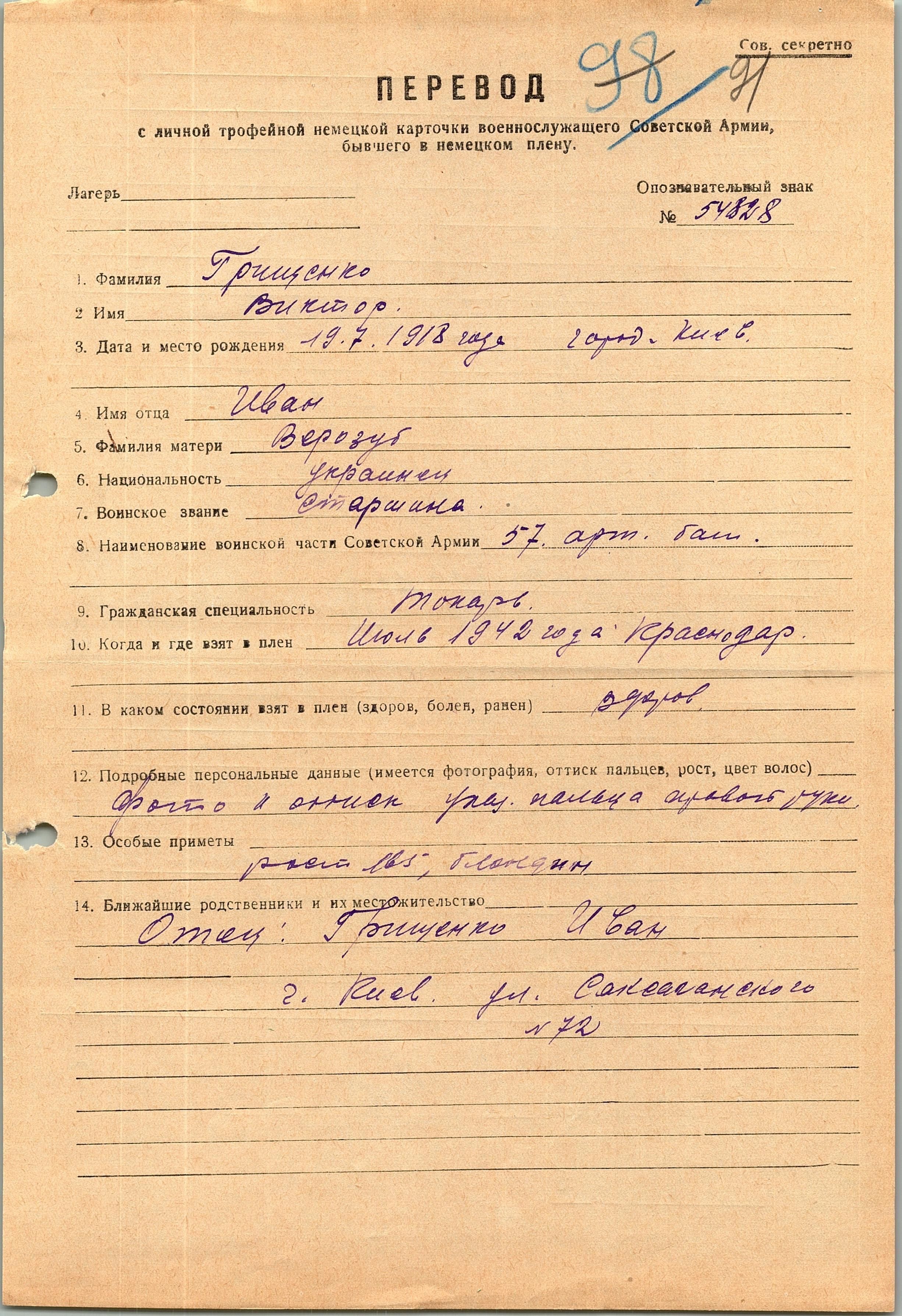 Военнопленные, трофейные карточки. Киевская обл.