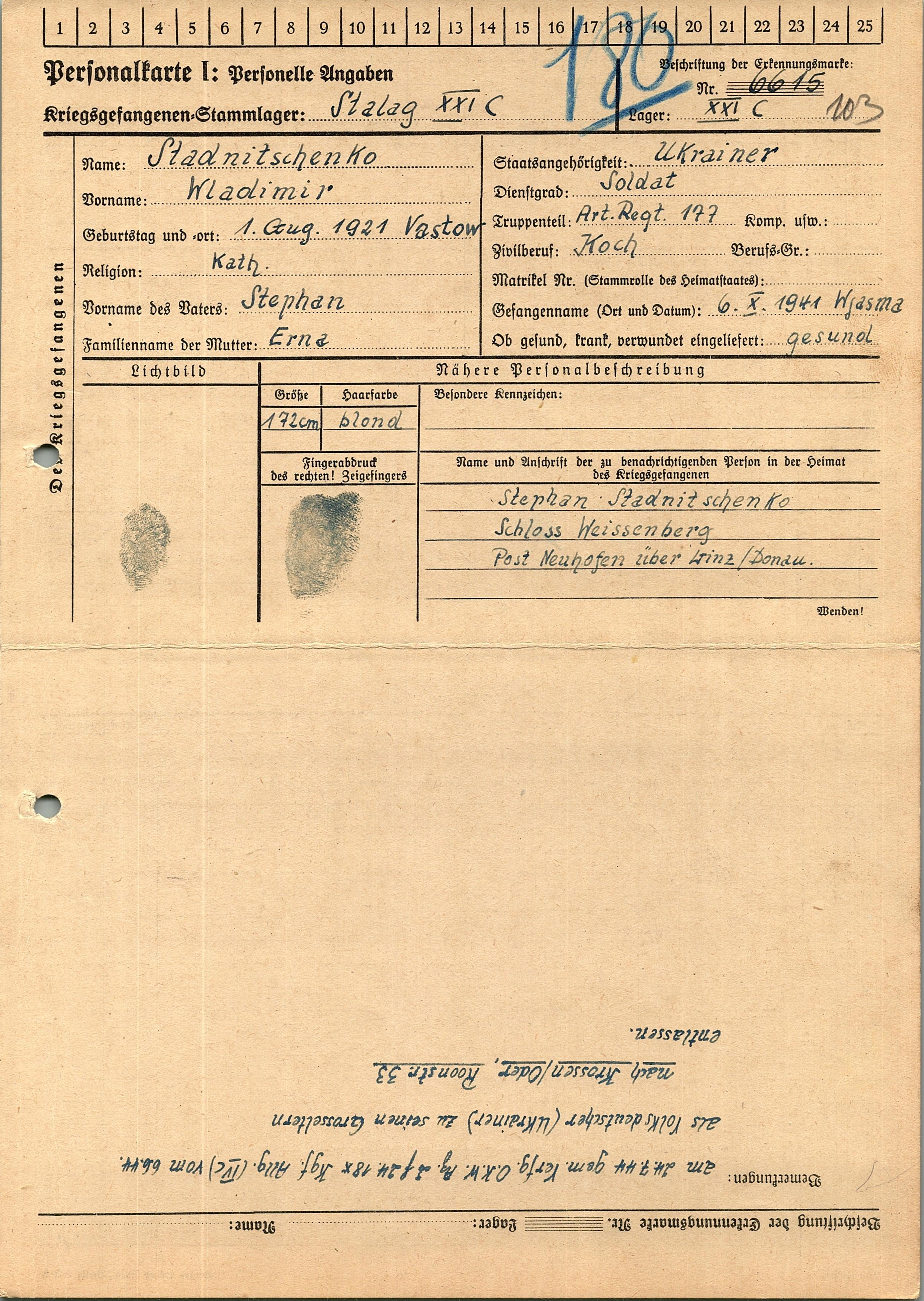 Военнопленные, трофейные карточки. Киевская обл.