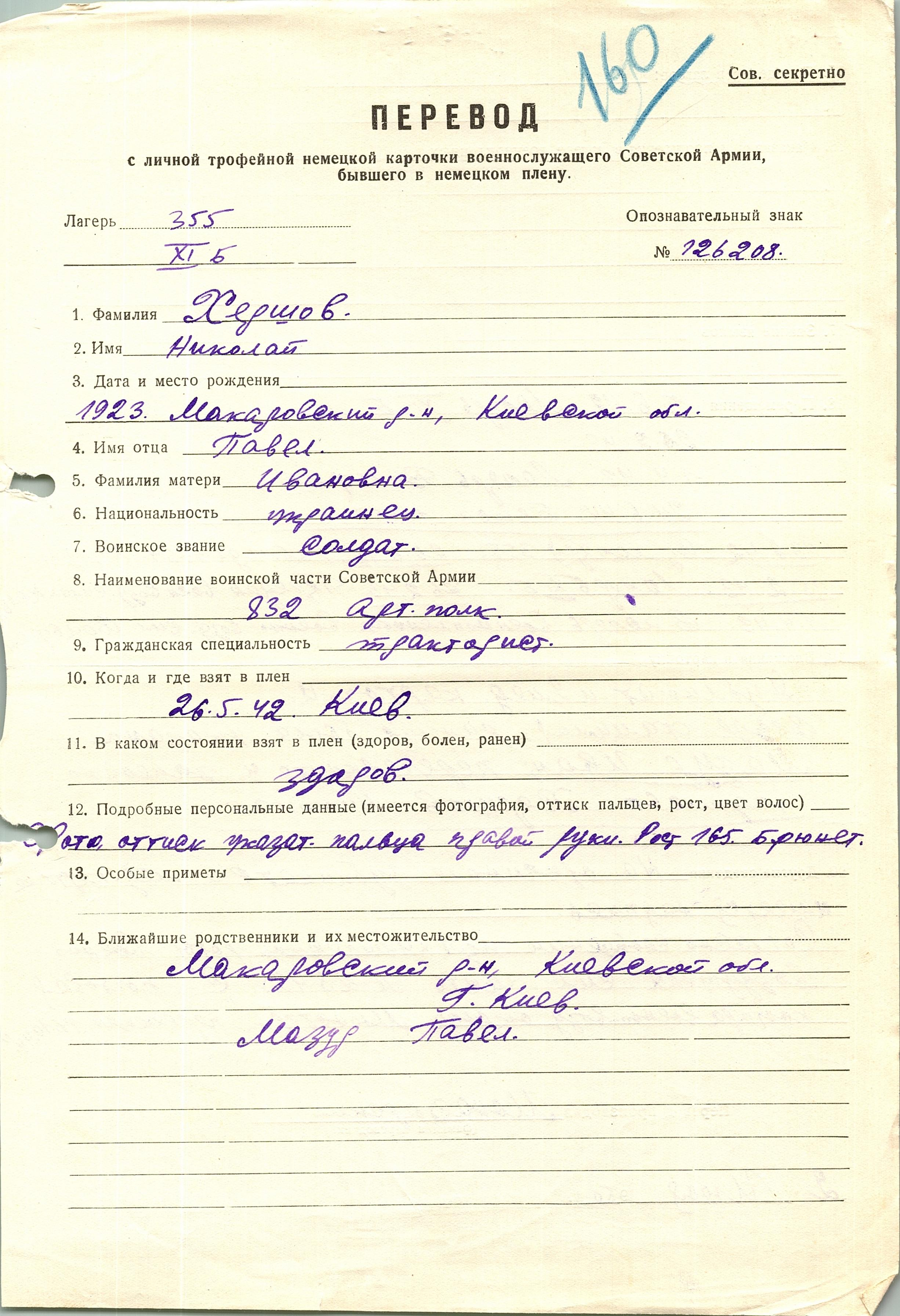 Военнопленные, трофейные карточки. Киевская обл.