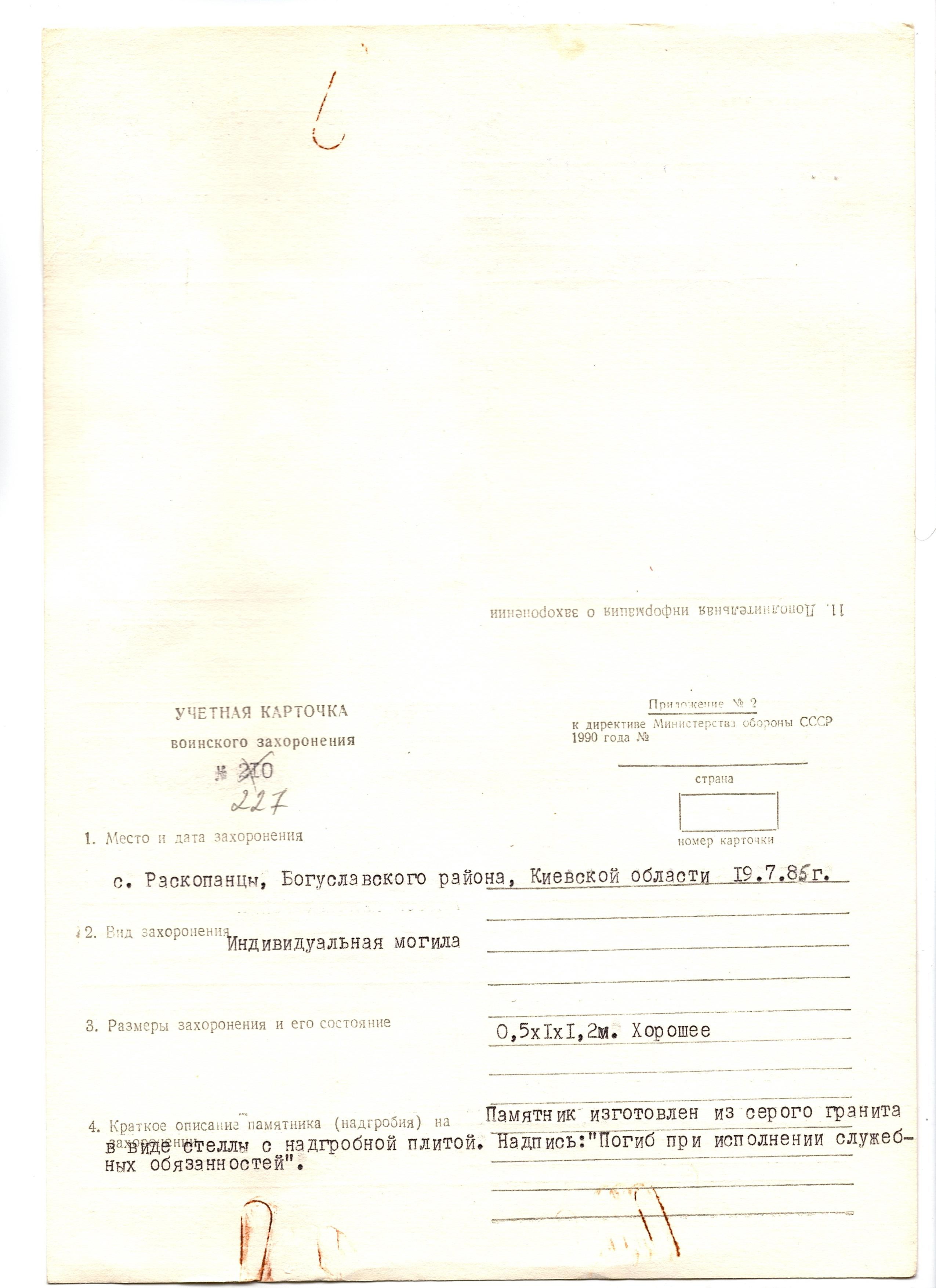 Могила рядового Антюшина И. Д. в с. Раскопанцы