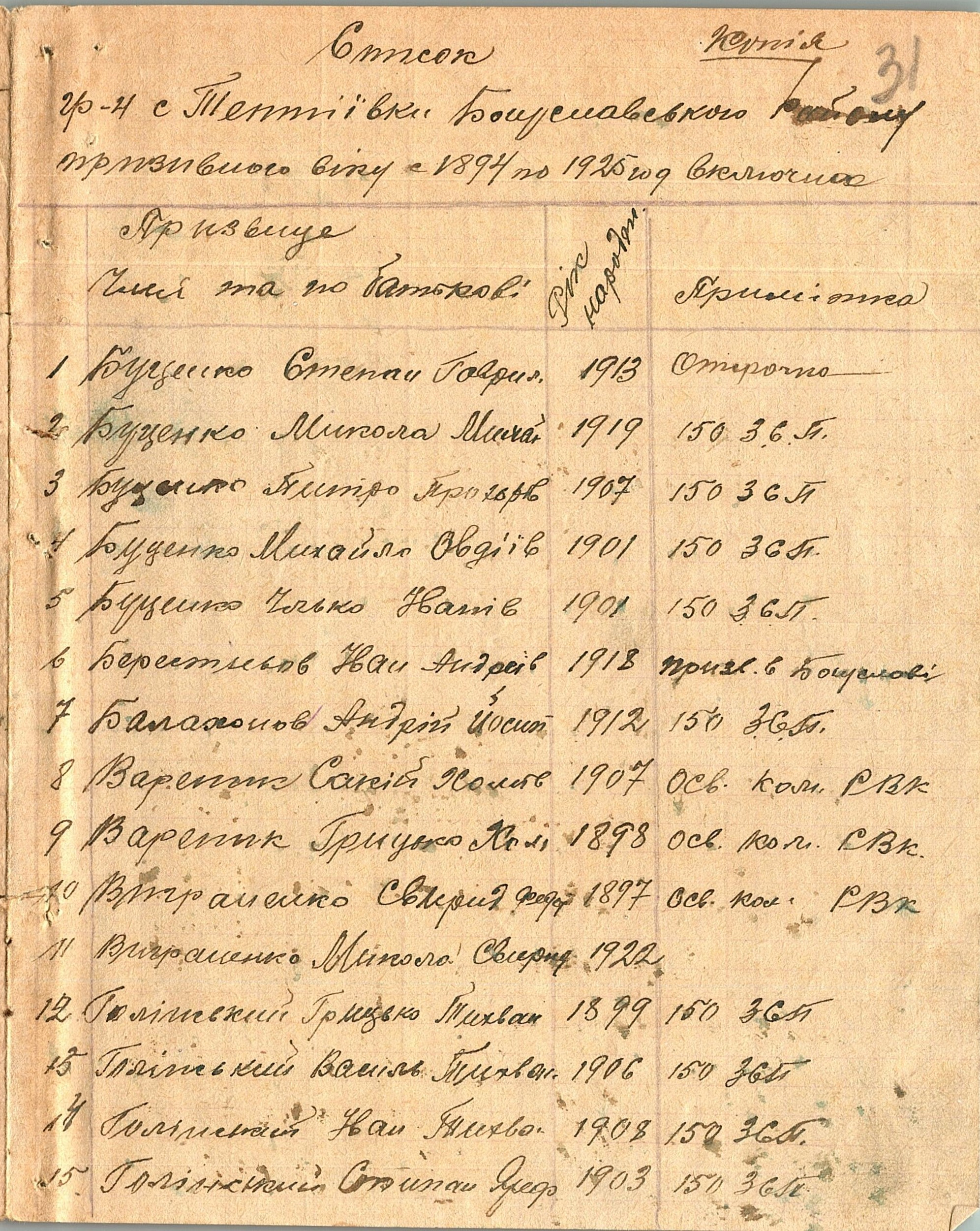 Документы о мобилизации в селах Богуславского района и акты медкомиссии