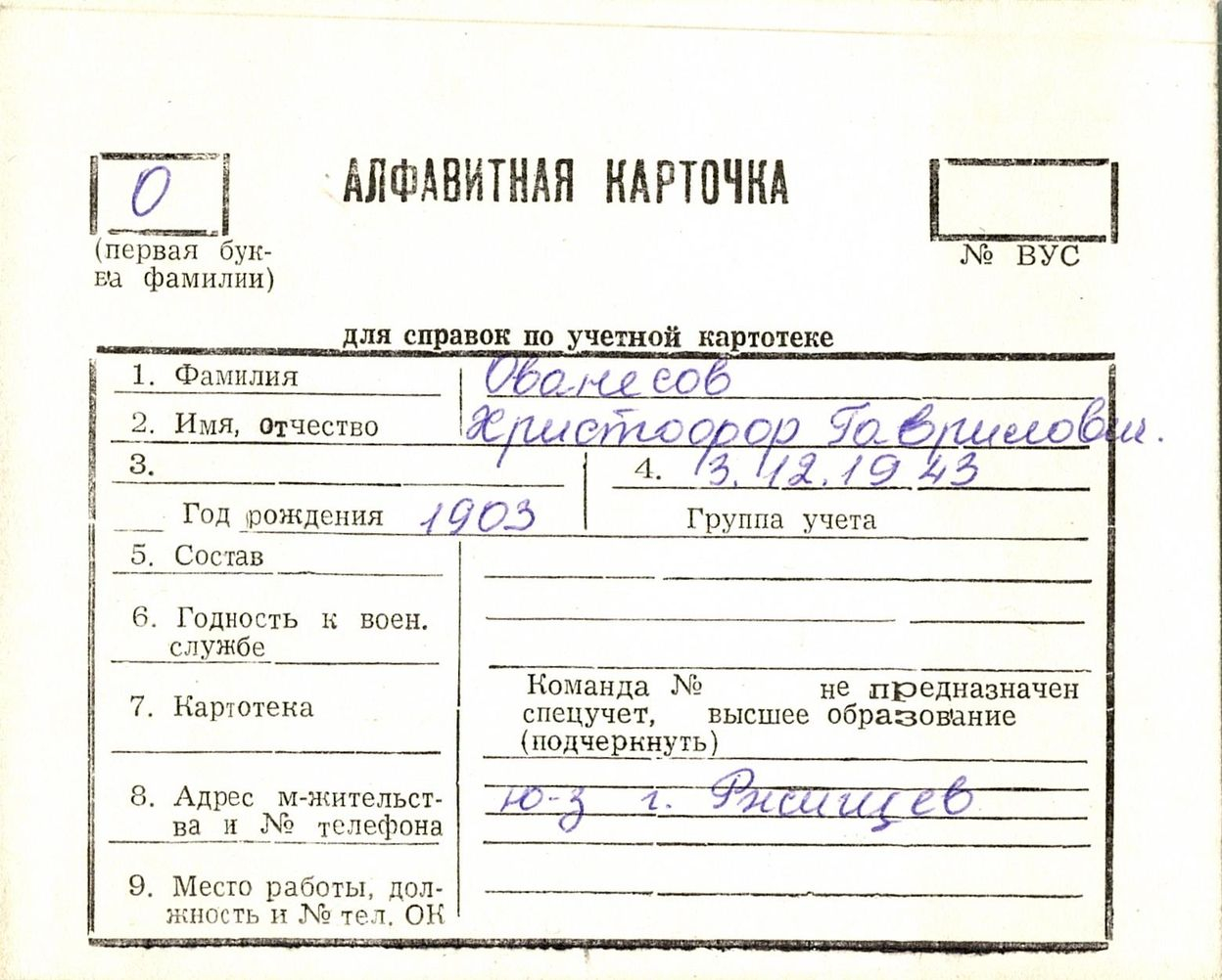 Алфавитные карточки Кагарлыкского района