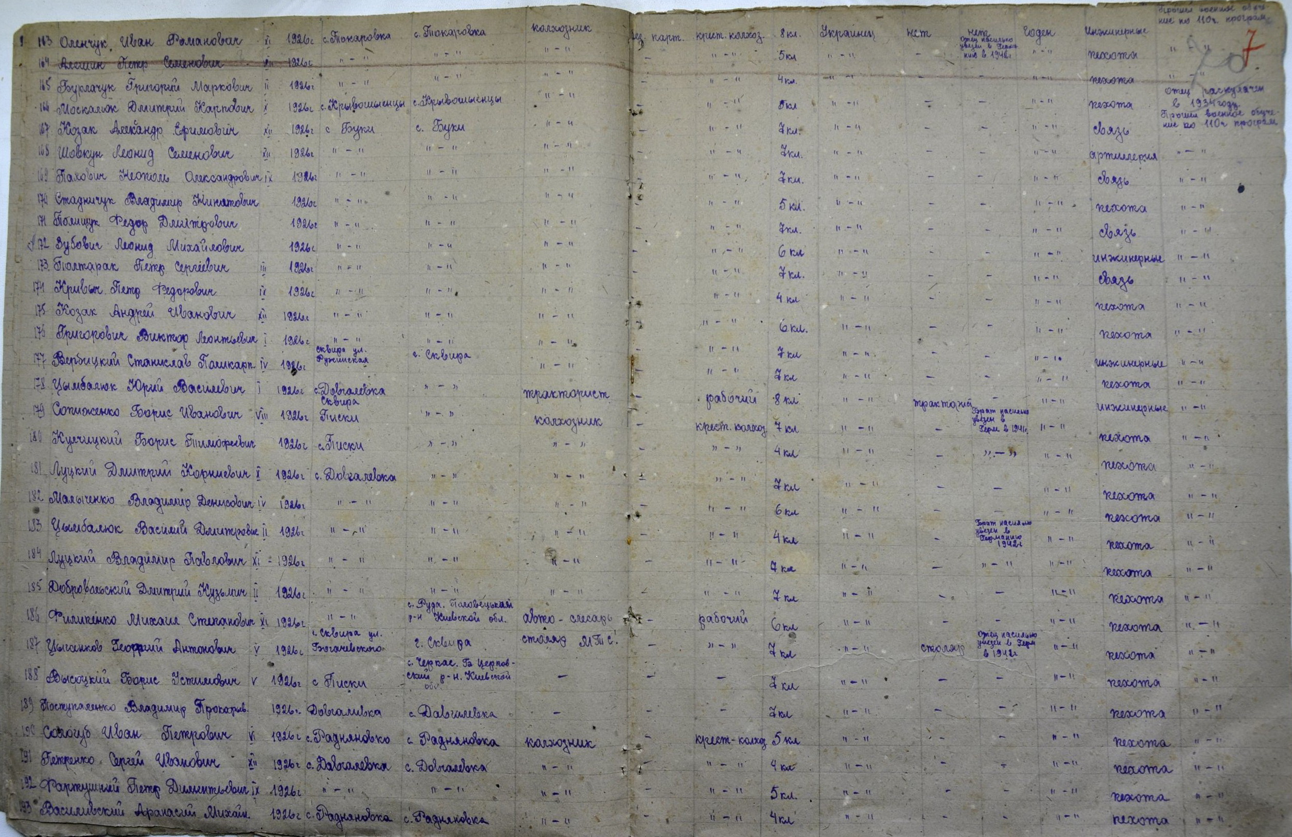 Списки призыва Сквирского района за 1944 г.