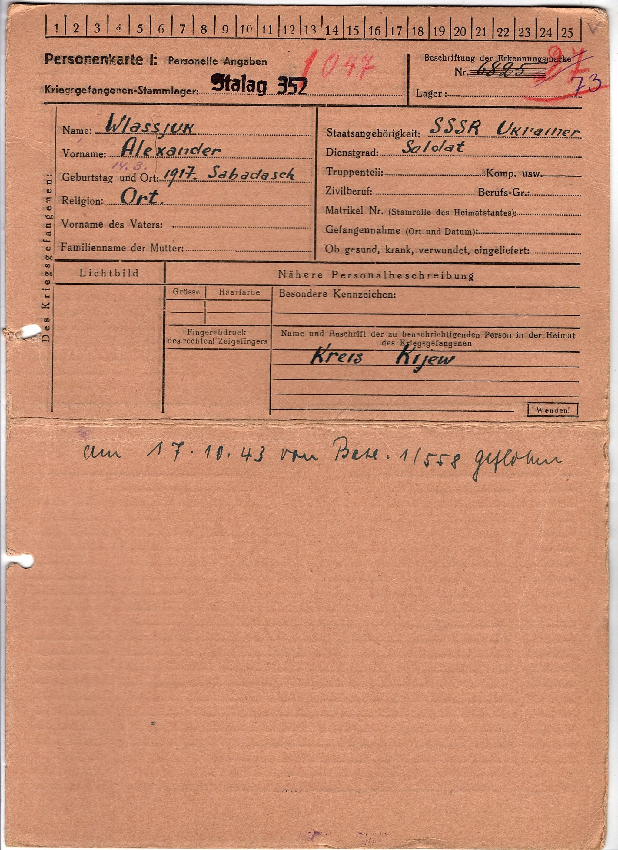 Военнопленные, трофейные карточки. Киевская обл.