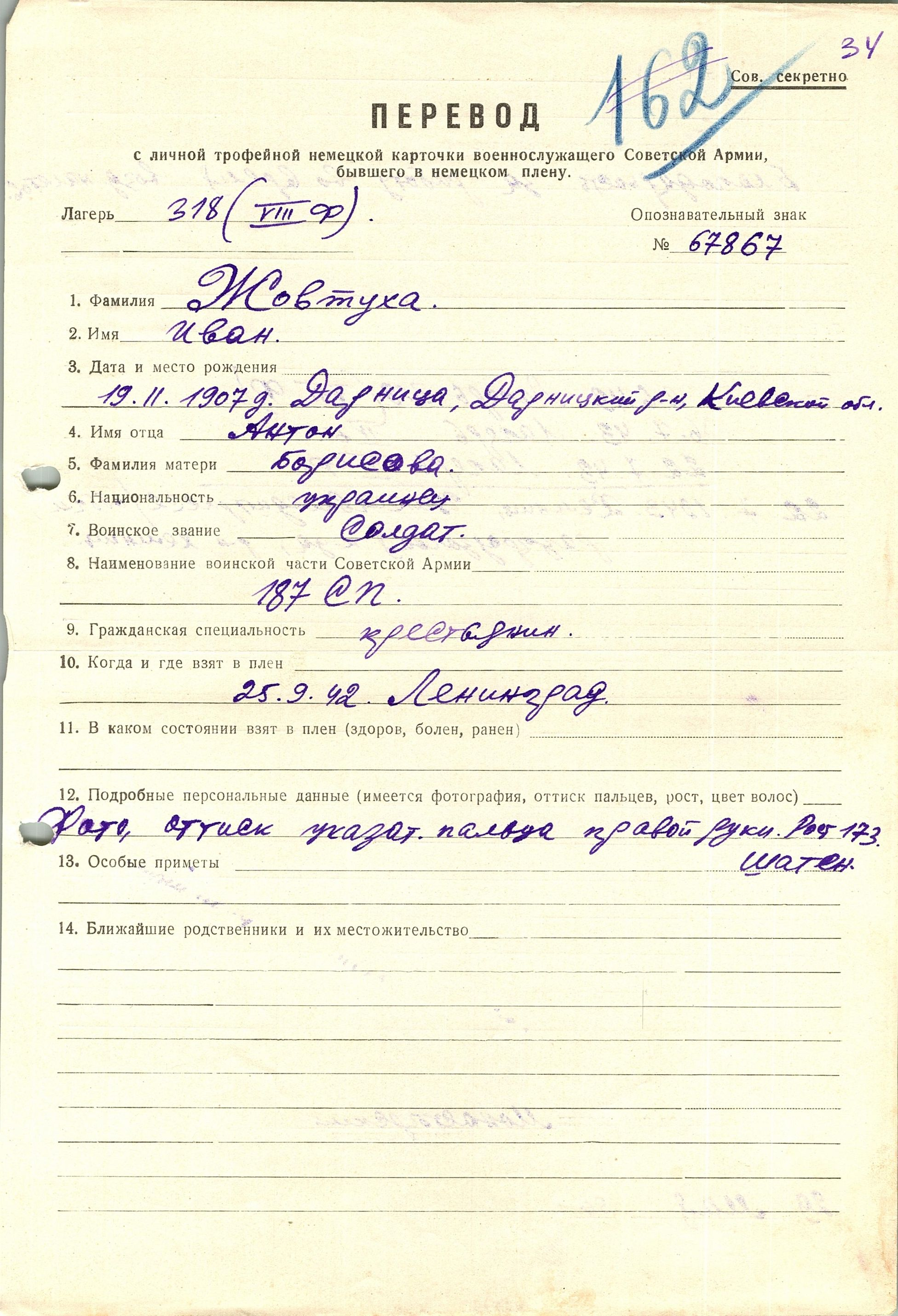 Военнопленные, трофейные карточки. Киевская обл.