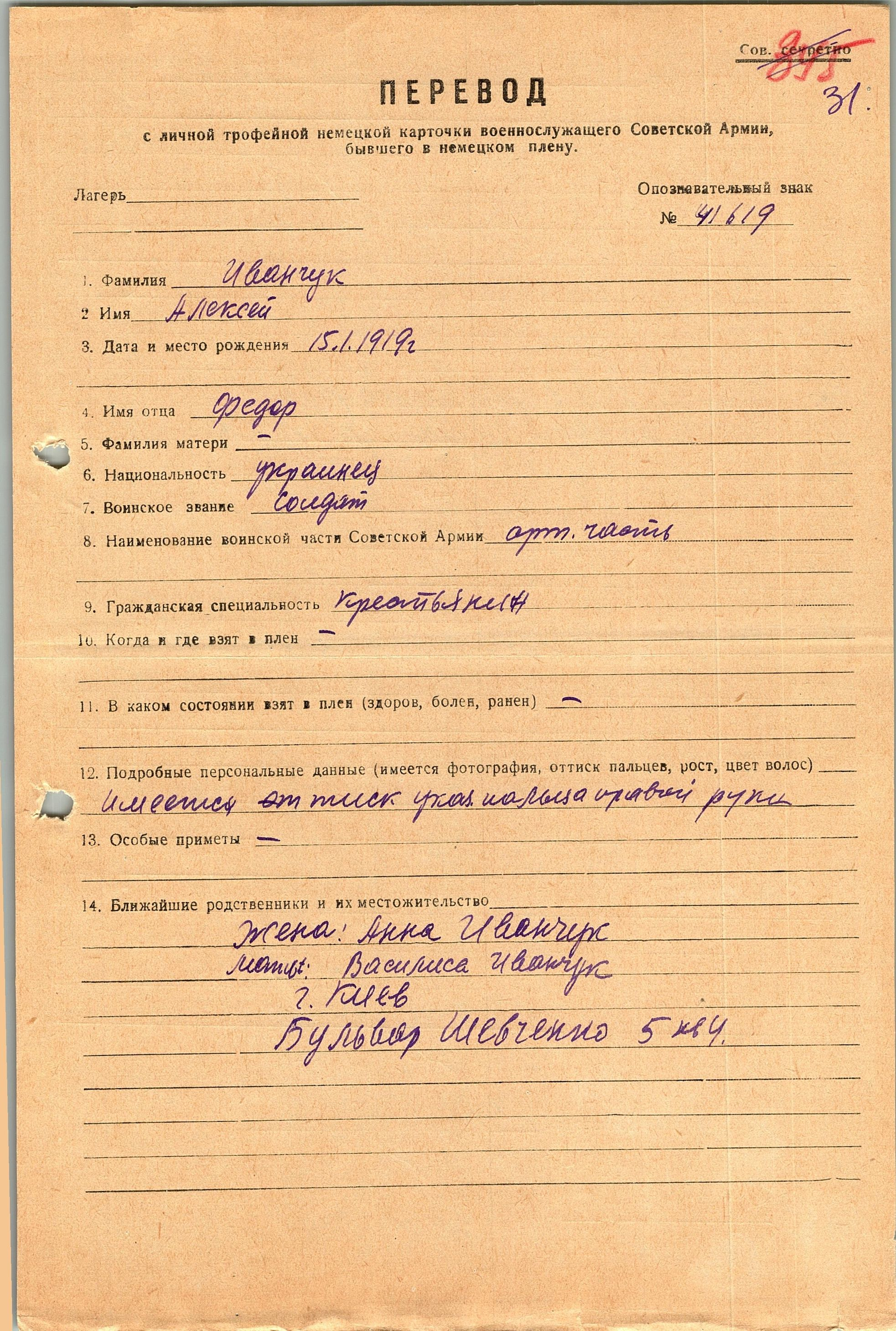 Военнопленные, трофейные карточки. Киевская обл.