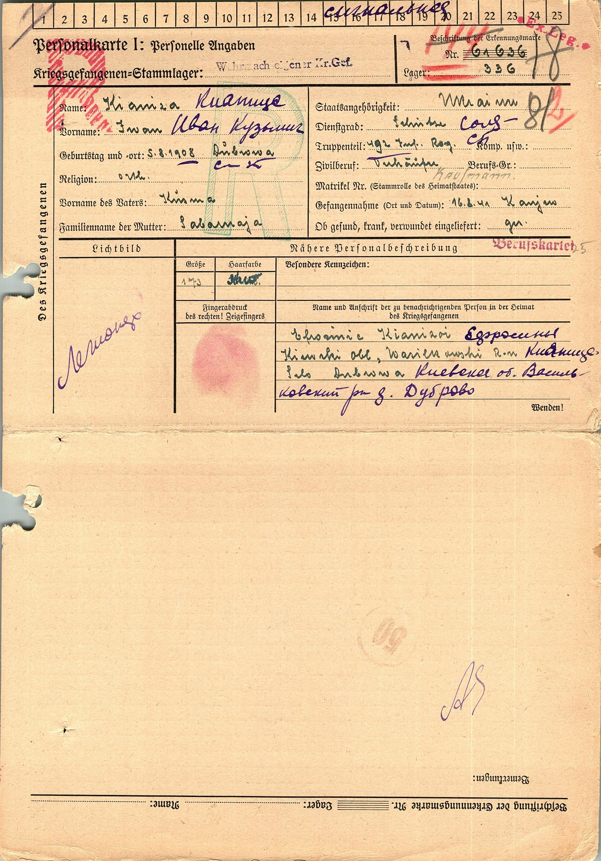 Военнопленные, трофейные карточки. Киевская обл.