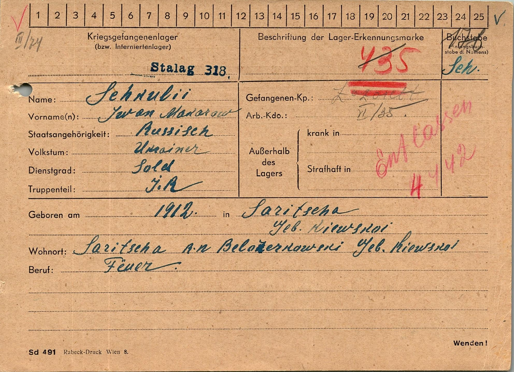 Военнопленные, трофейные карточки. Киевская обл.