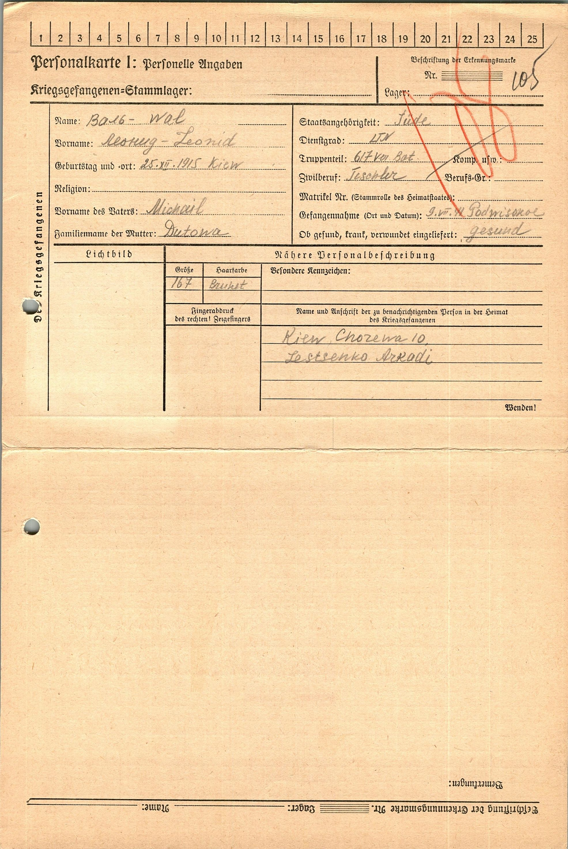 Военнопленные, трофейные карточки. Киевская обл.