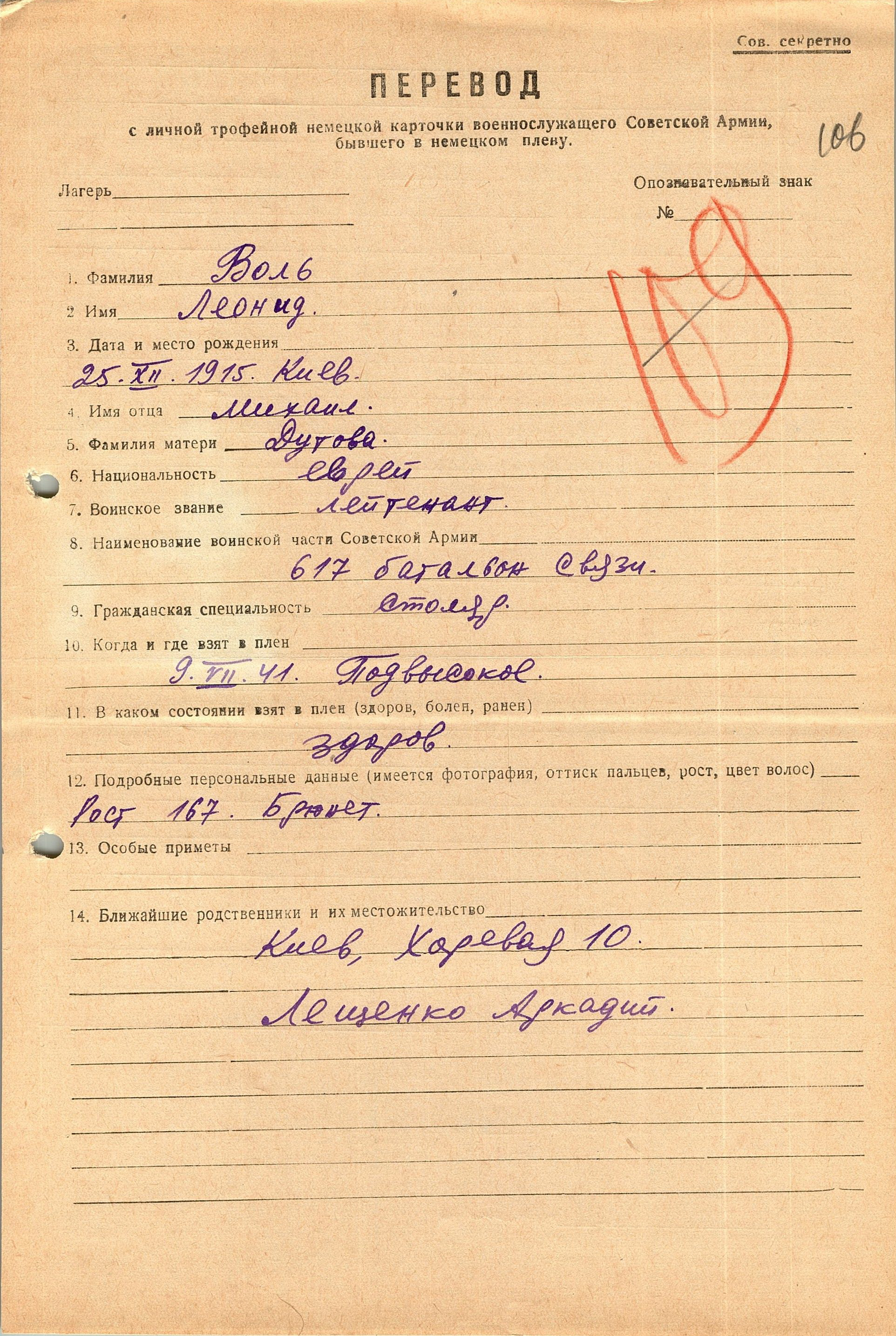 Военнопленные, трофейные карточки. Киевская обл.