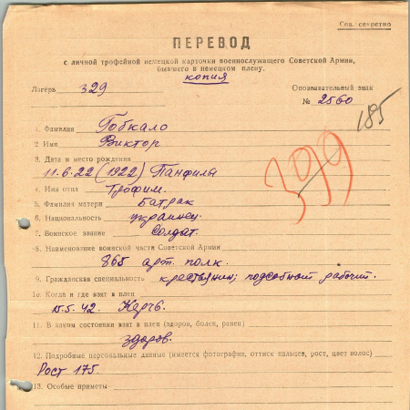 Военнопленные, трофейные карточки. Киевская обл.