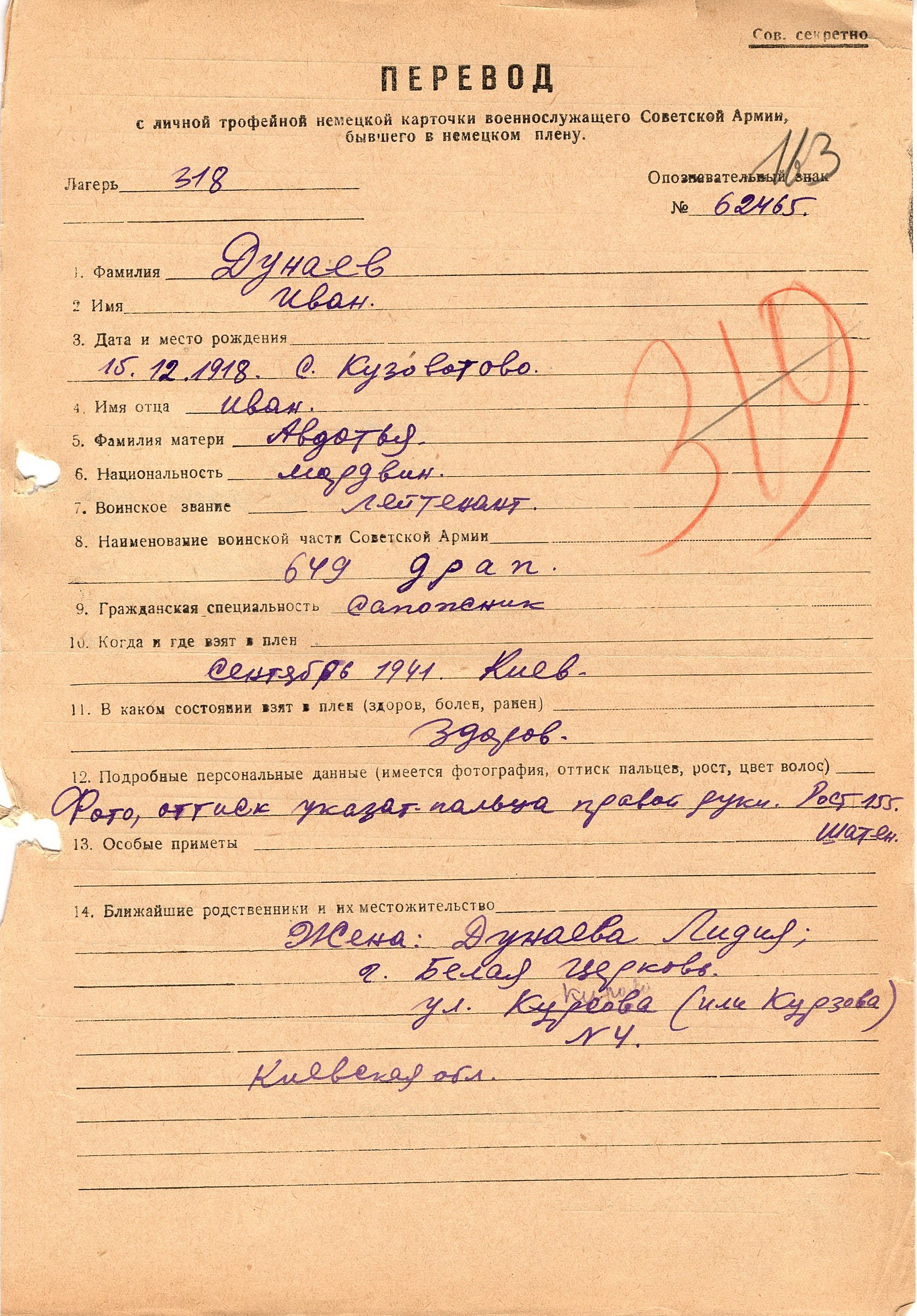 Военнопленные, трофейные карточки. Киевская обл.