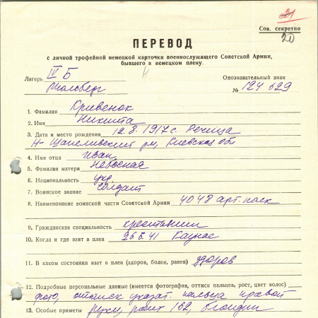 Военнопленные, трофейные карточки. Киевская обл.