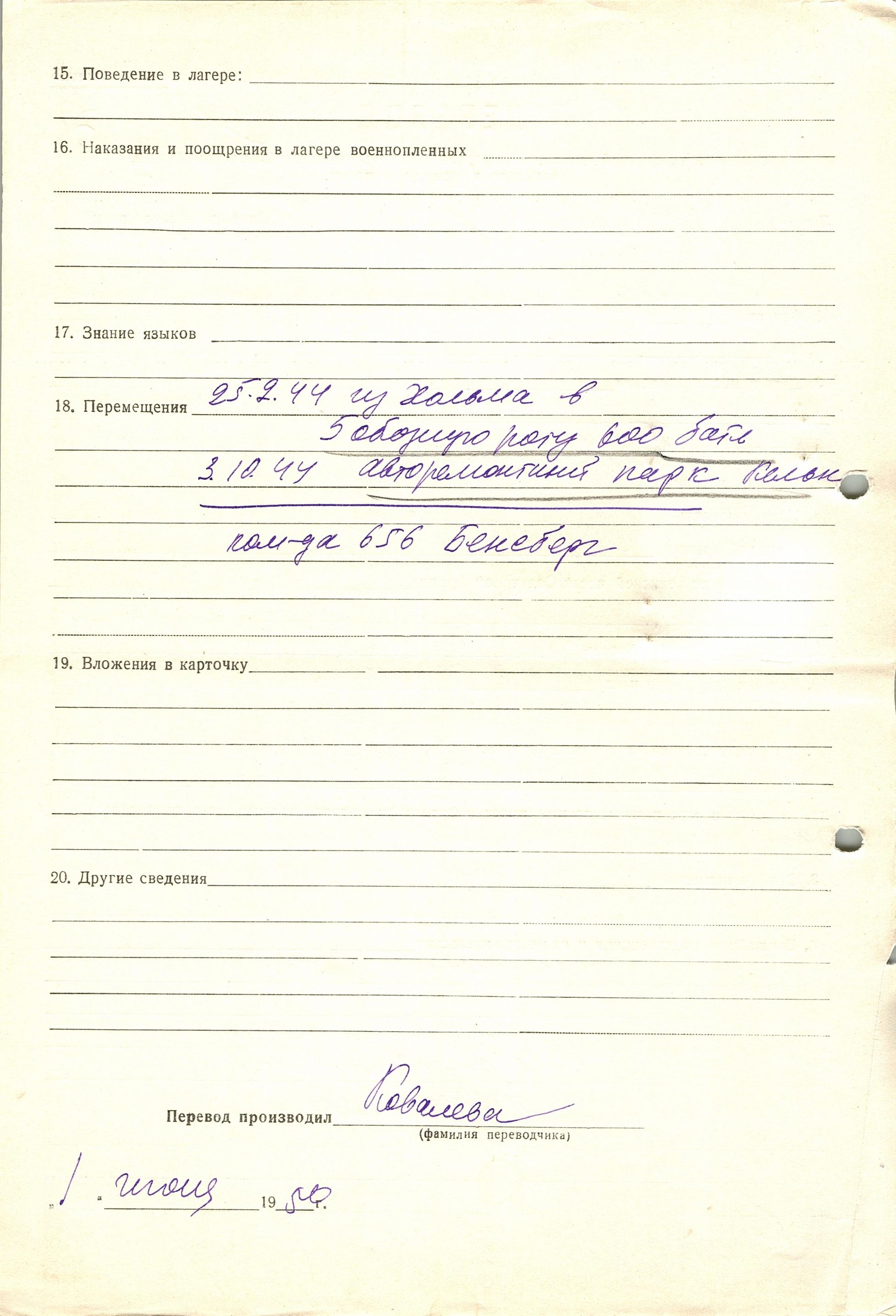 Военнопленные, трофейные карточки. Киевская обл.