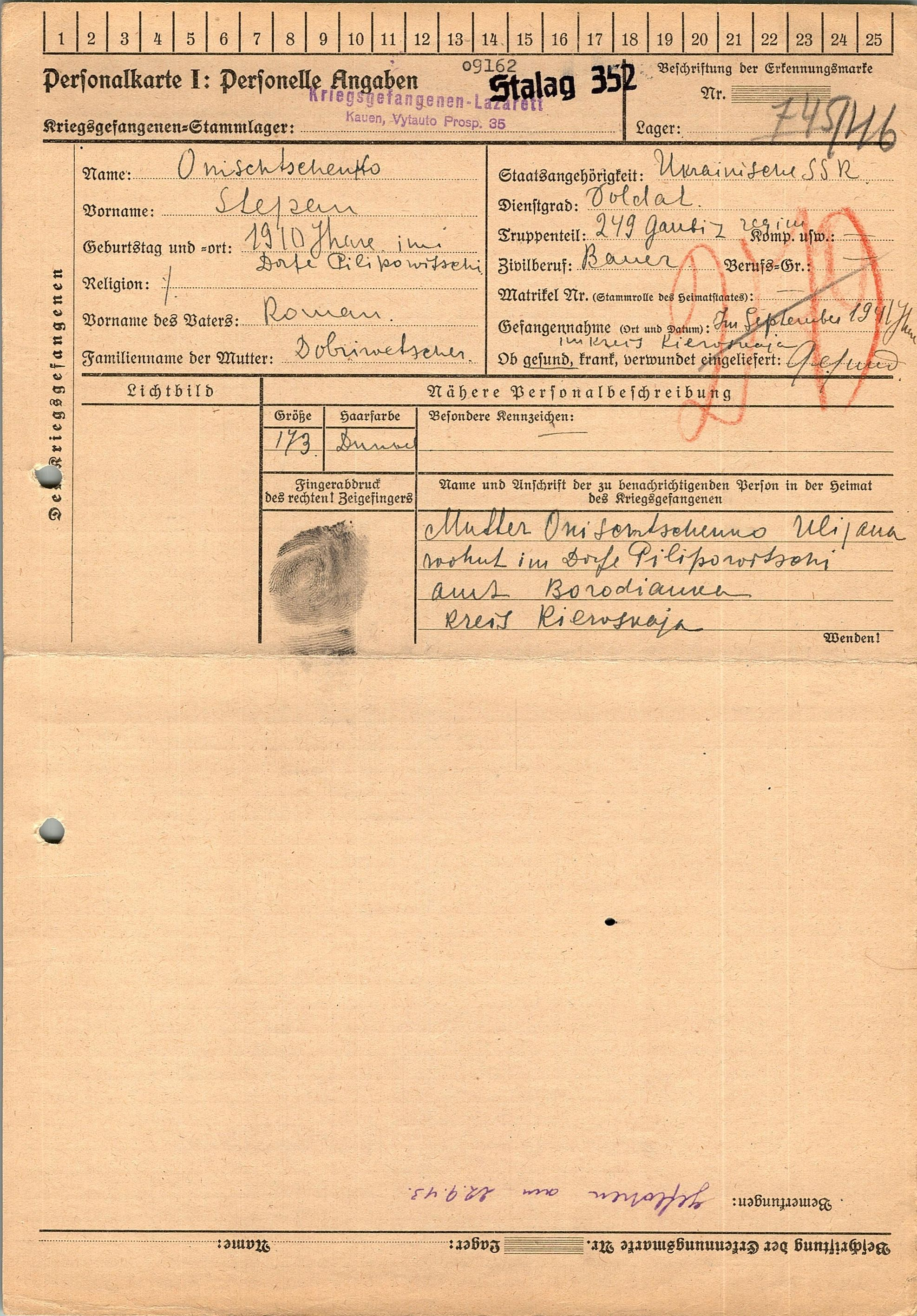 Военнопленные, трофейные карточки. Киевская обл.