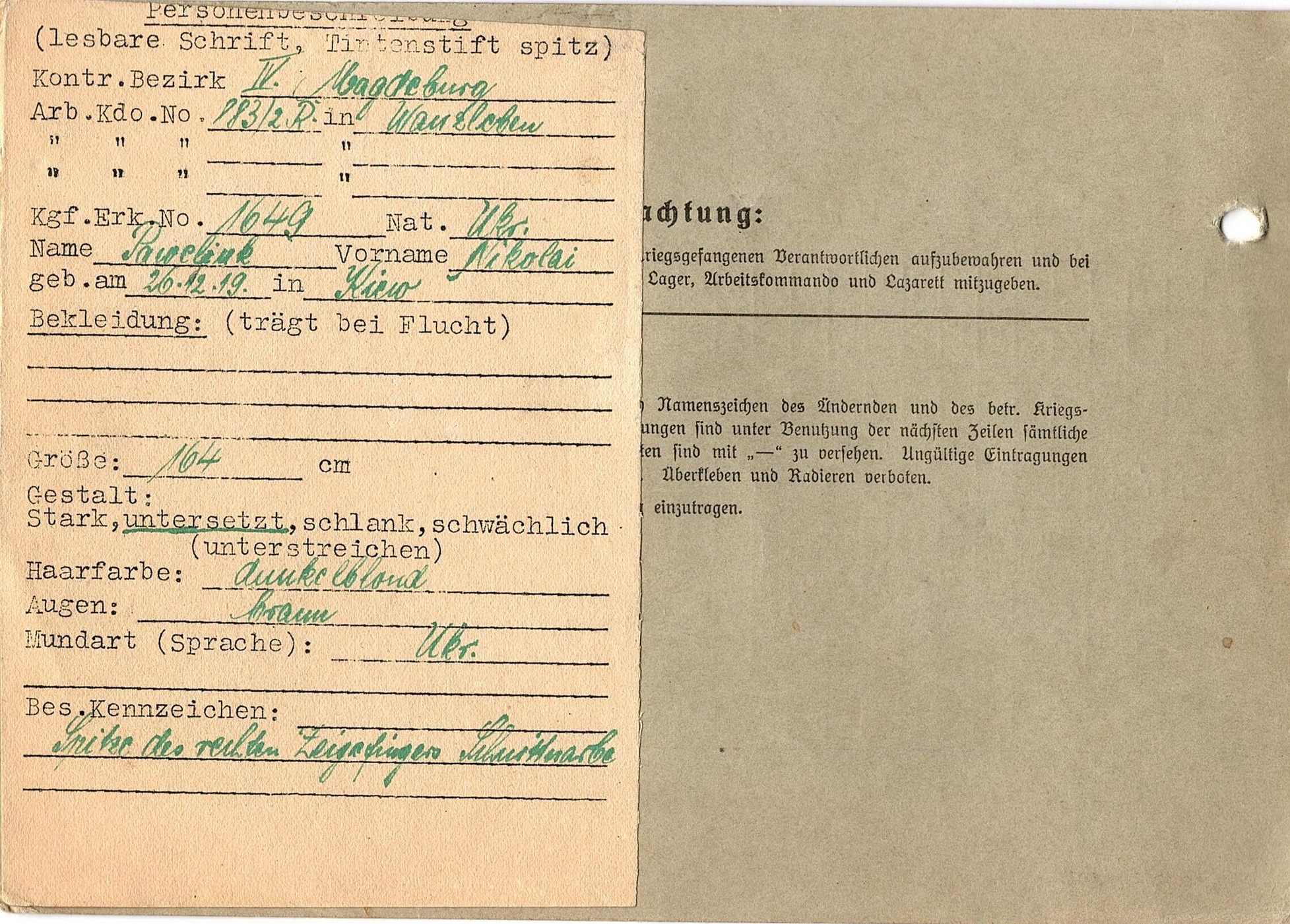 Военнопленные, трофейные карточки. Киевская обл.