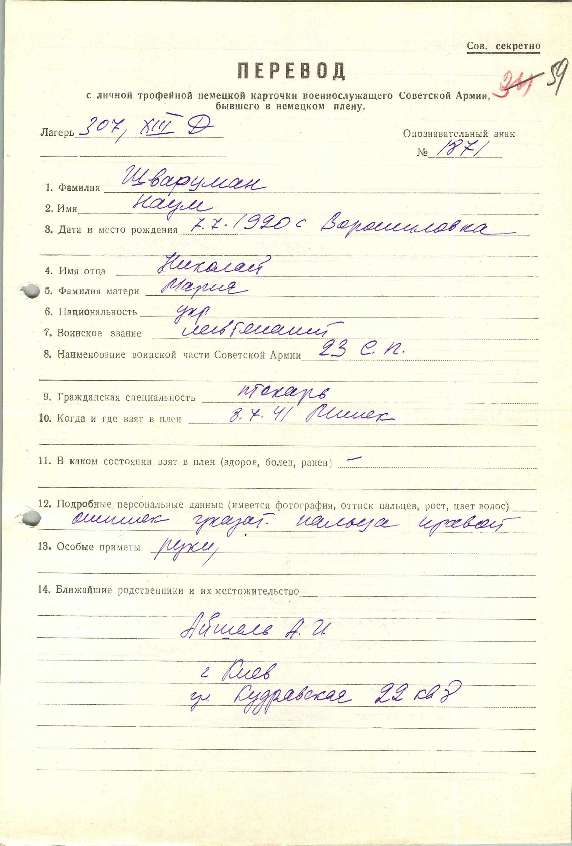 Военнопленные, трофейные карточки. Киевская обл.