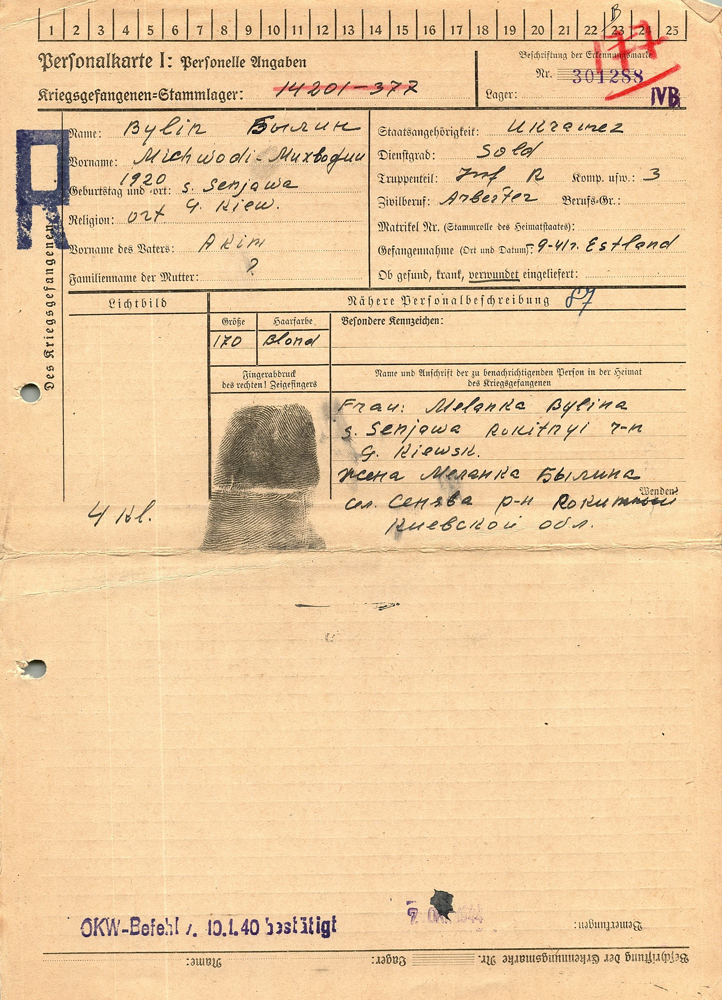 Военнопленные, трофейные карточки. Киевская обл.