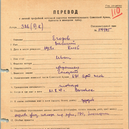 Военнопленные, трофейные карточки. Киевская обл.