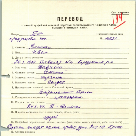 Военнопленные, трофейные карточки. Киевская обл.