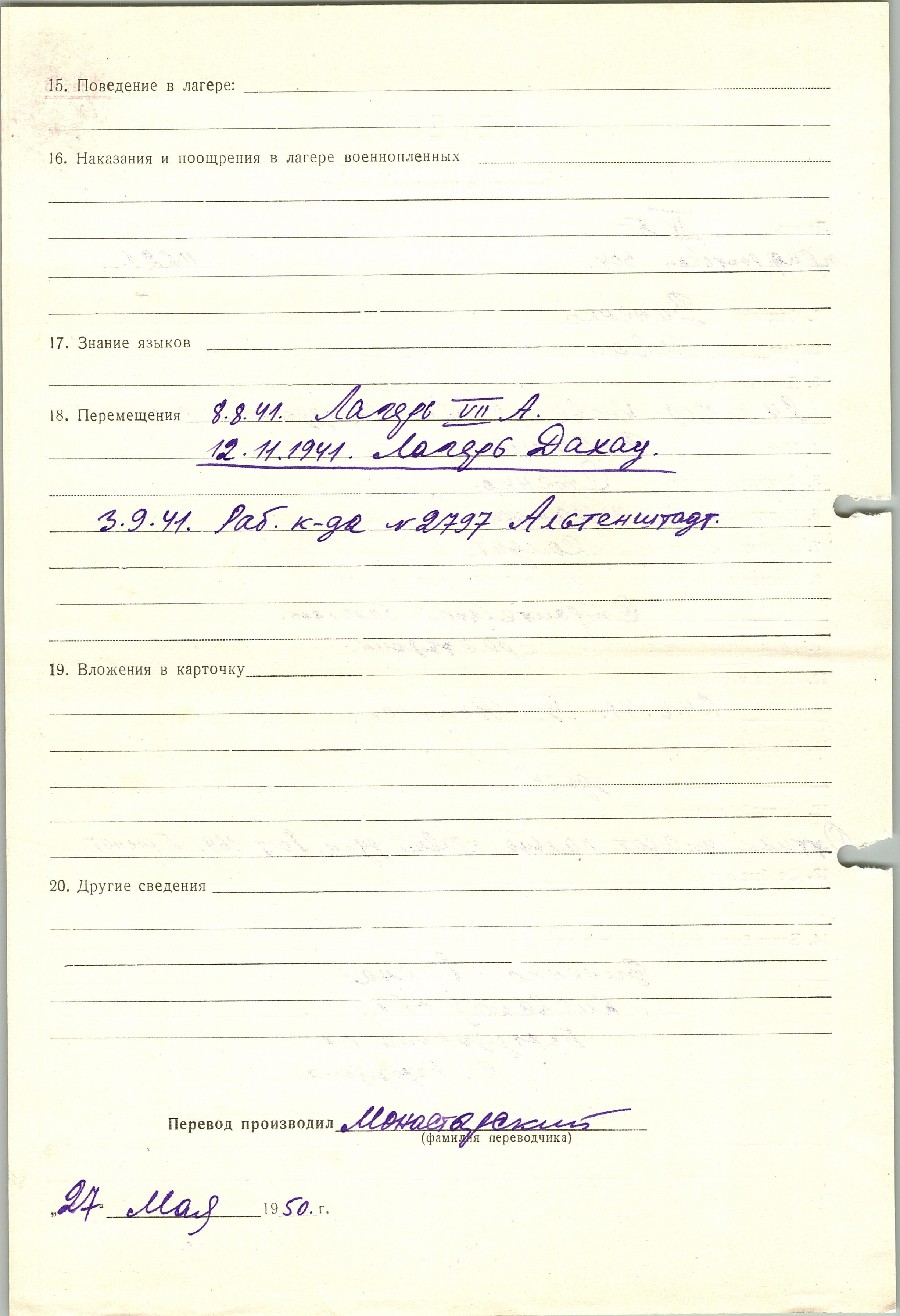 Военнопленные, трофейные карточки. Киевская обл.