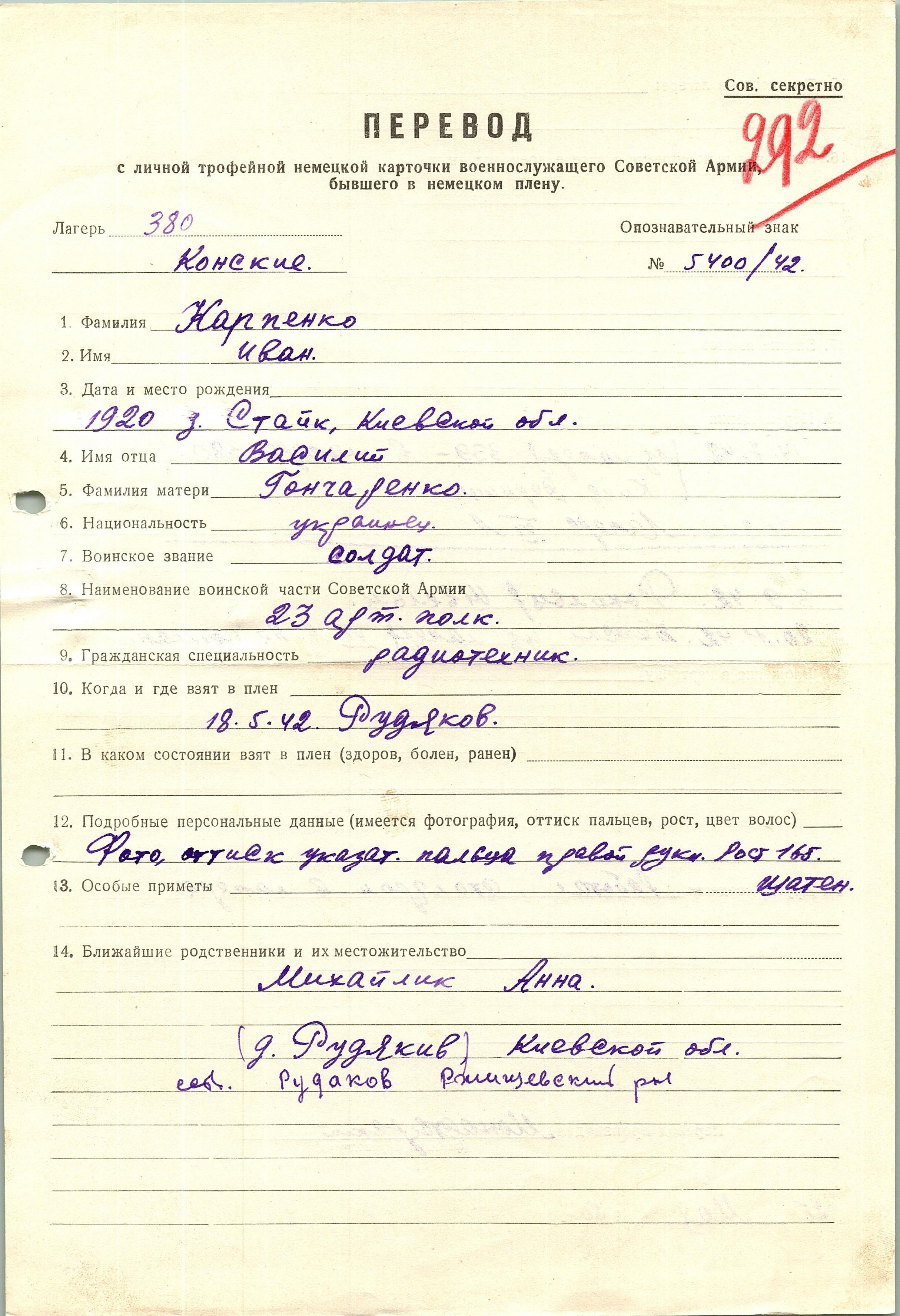 Военнопленные, трофейные карточки. Киевская обл.