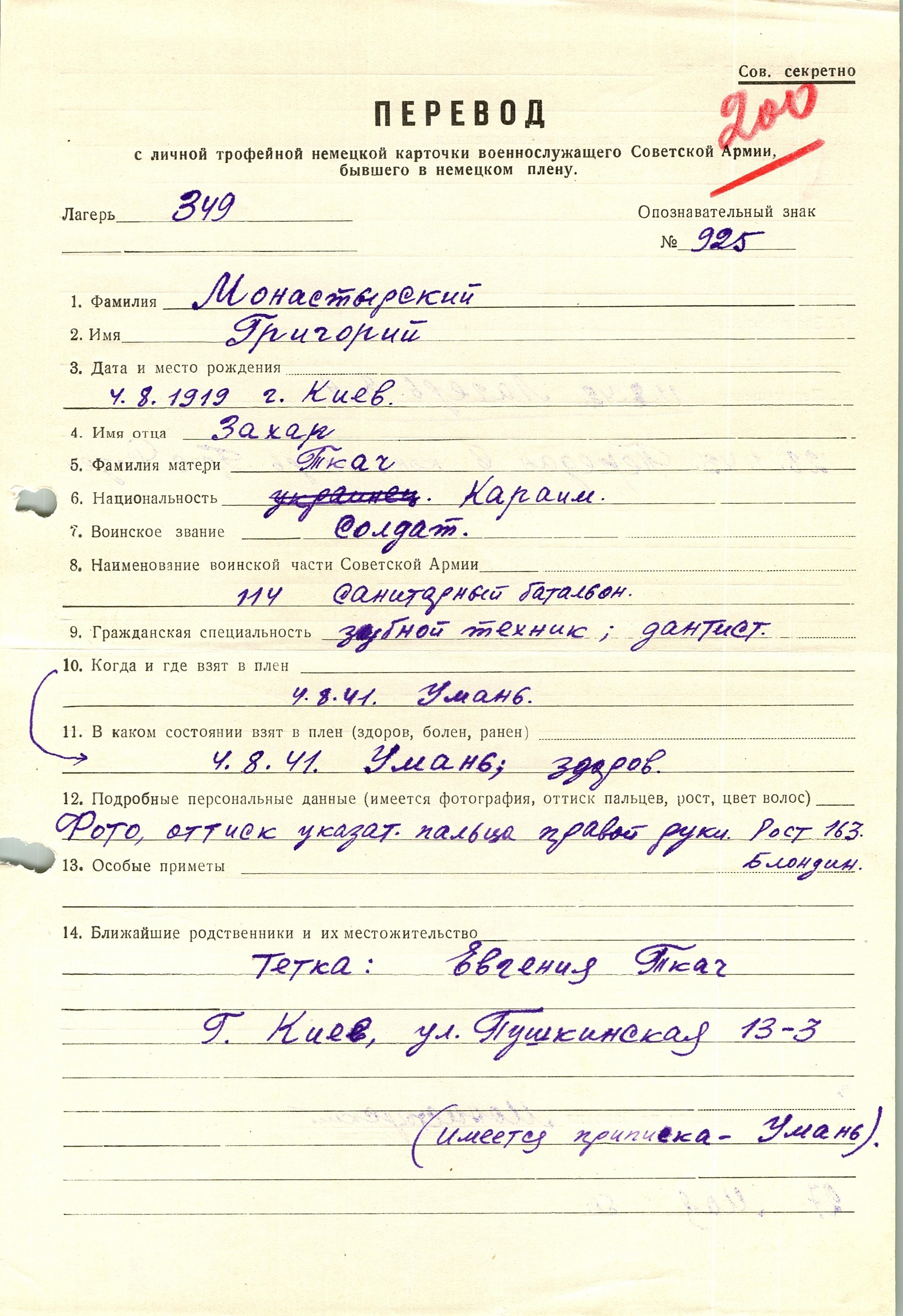 Военнопленные, трофейные карточки. Киевская обл.