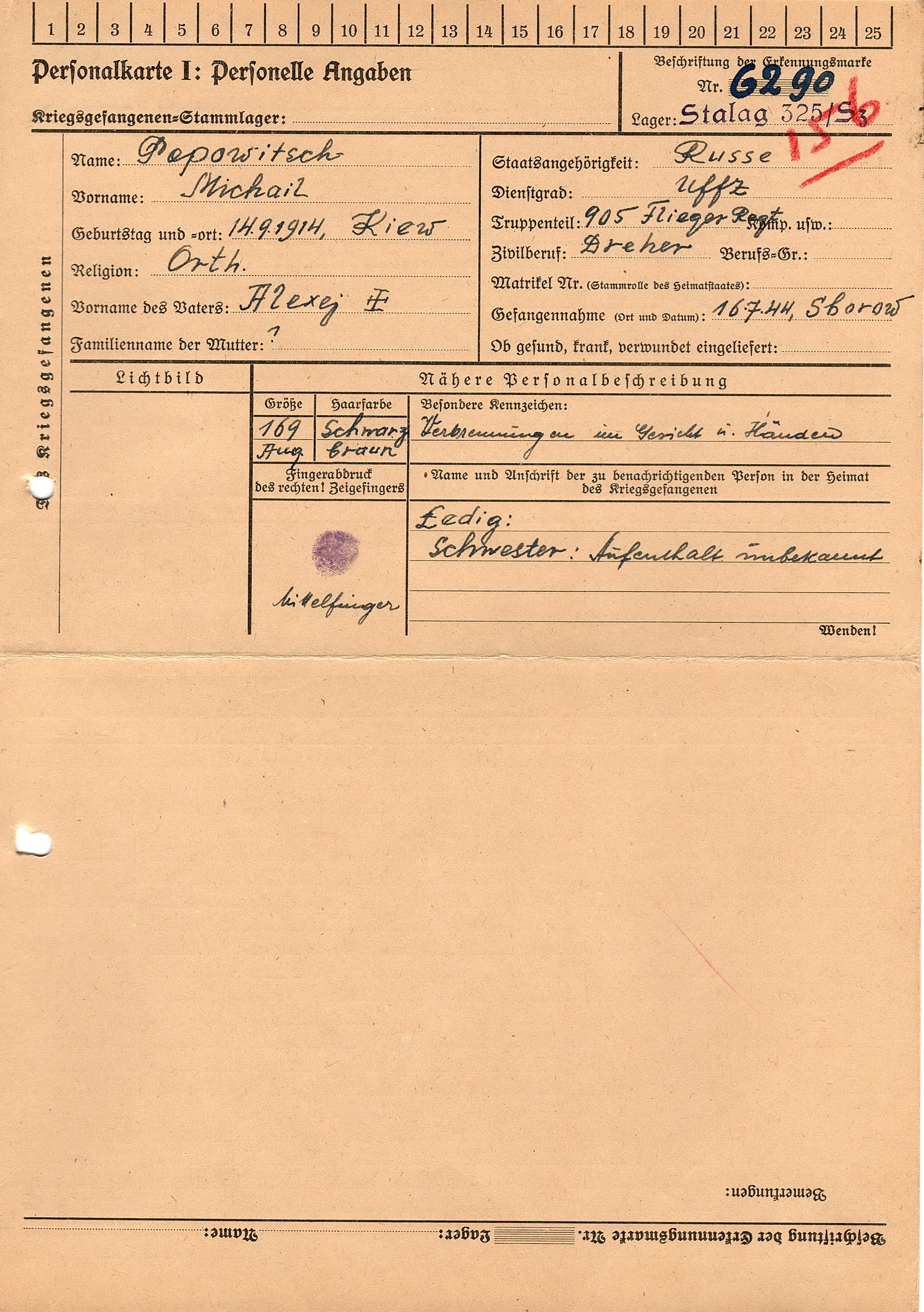 Военнопленные, трофейные карточки. Киевская обл.