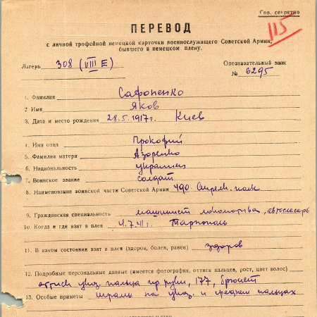 Военнопленные, трофейные карточки. Киевская обл.