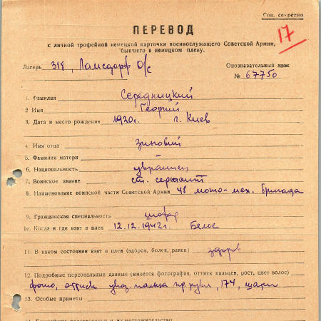 Военнопленные, трофейные карточки. Киевская обл.