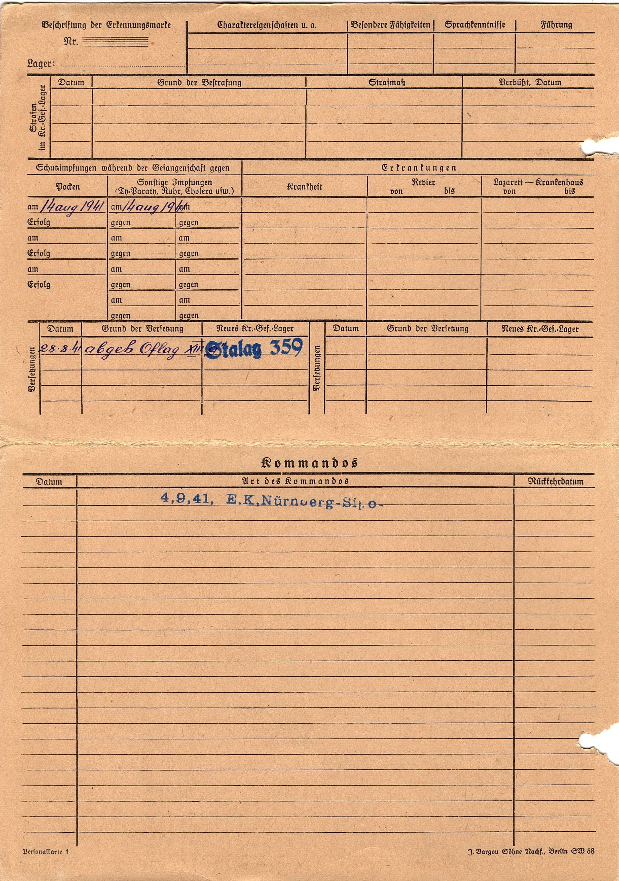 Военнопленные, трофейные карточки. Киевская обл.