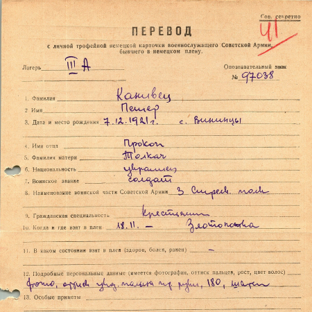 Военнопленные, трофейные карточки. Киевская обл.