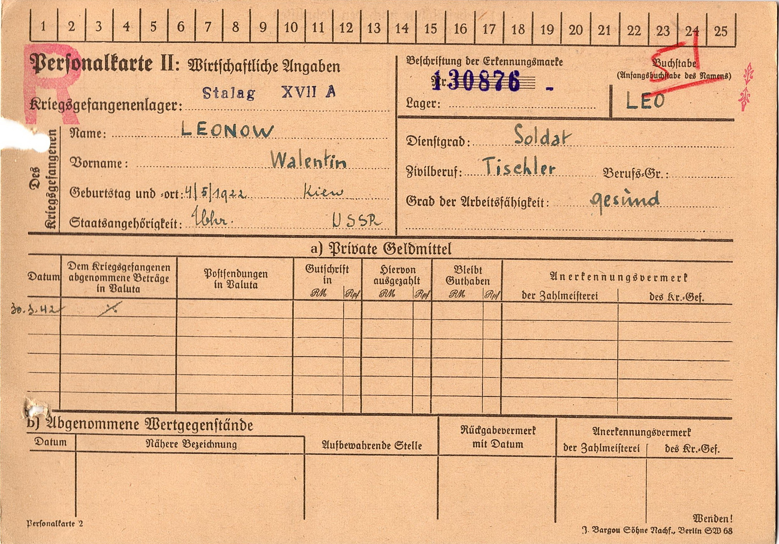Военнопленные, трофейные карточки. Киевская обл.