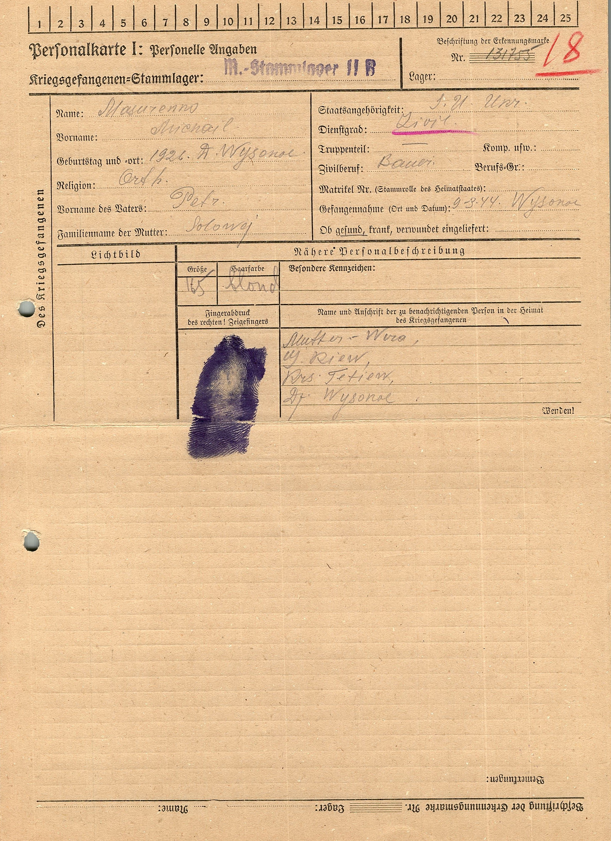 Военнопленные, трофейные карточки. Киевская обл.