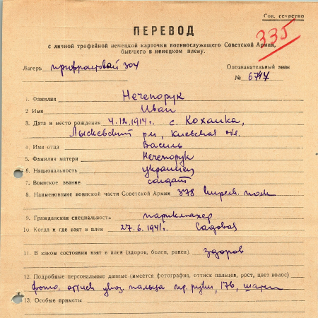 Военнопленные, трофейные карточки. Киевская обл.