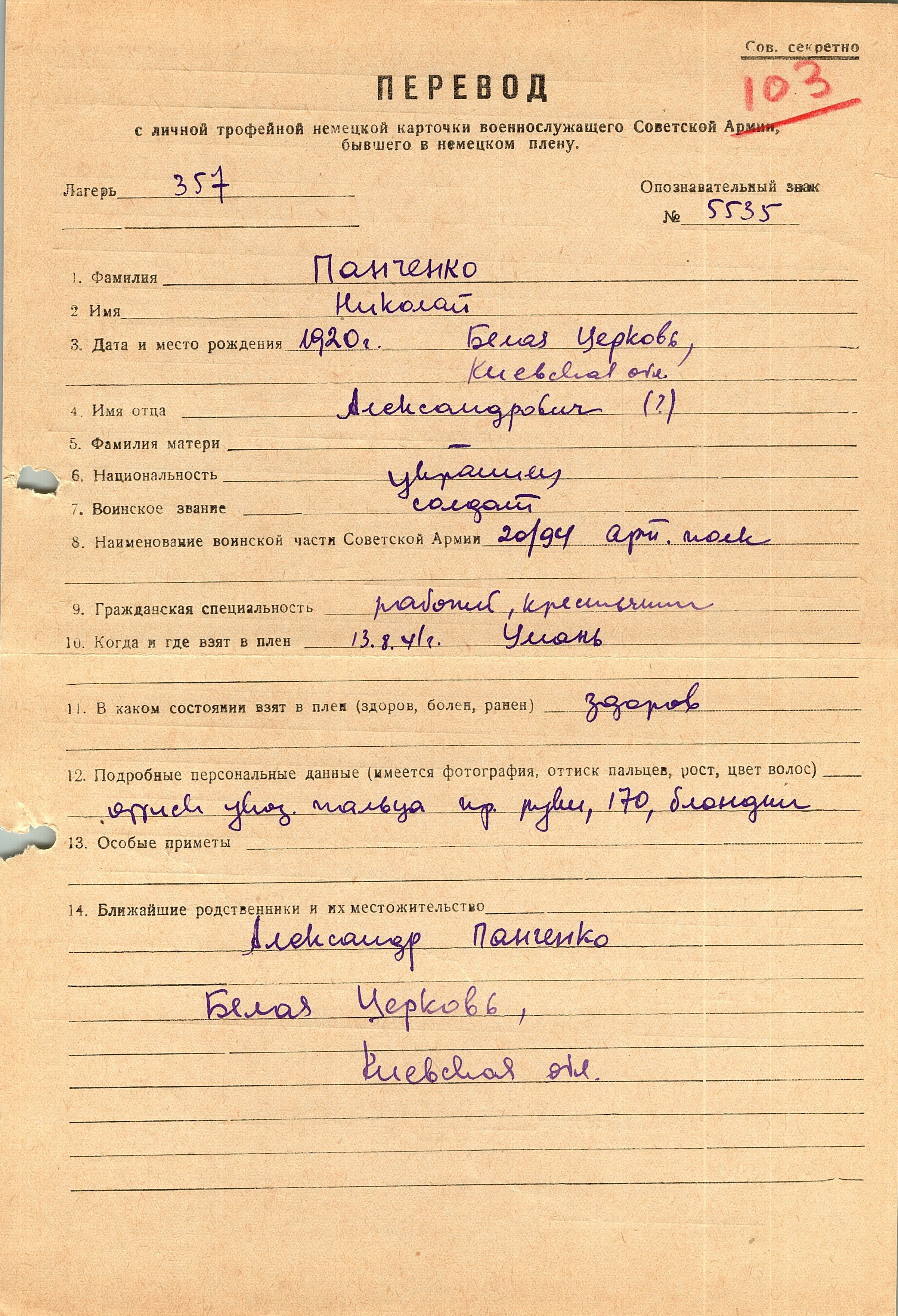 Военнопленные, трофейные карточки. Киевская обл.