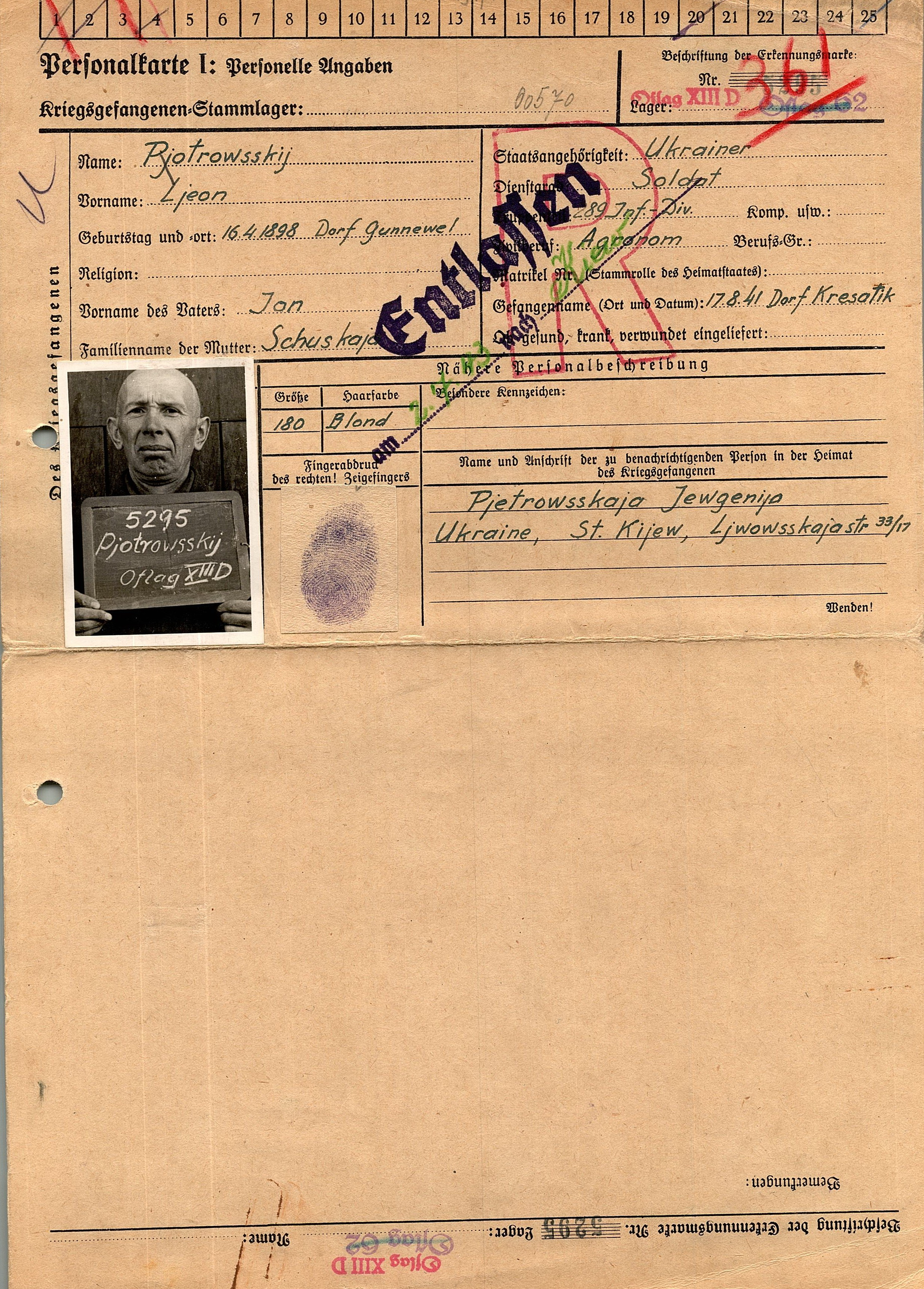 Военнопленные, трофейные карточки. Киевская обл.