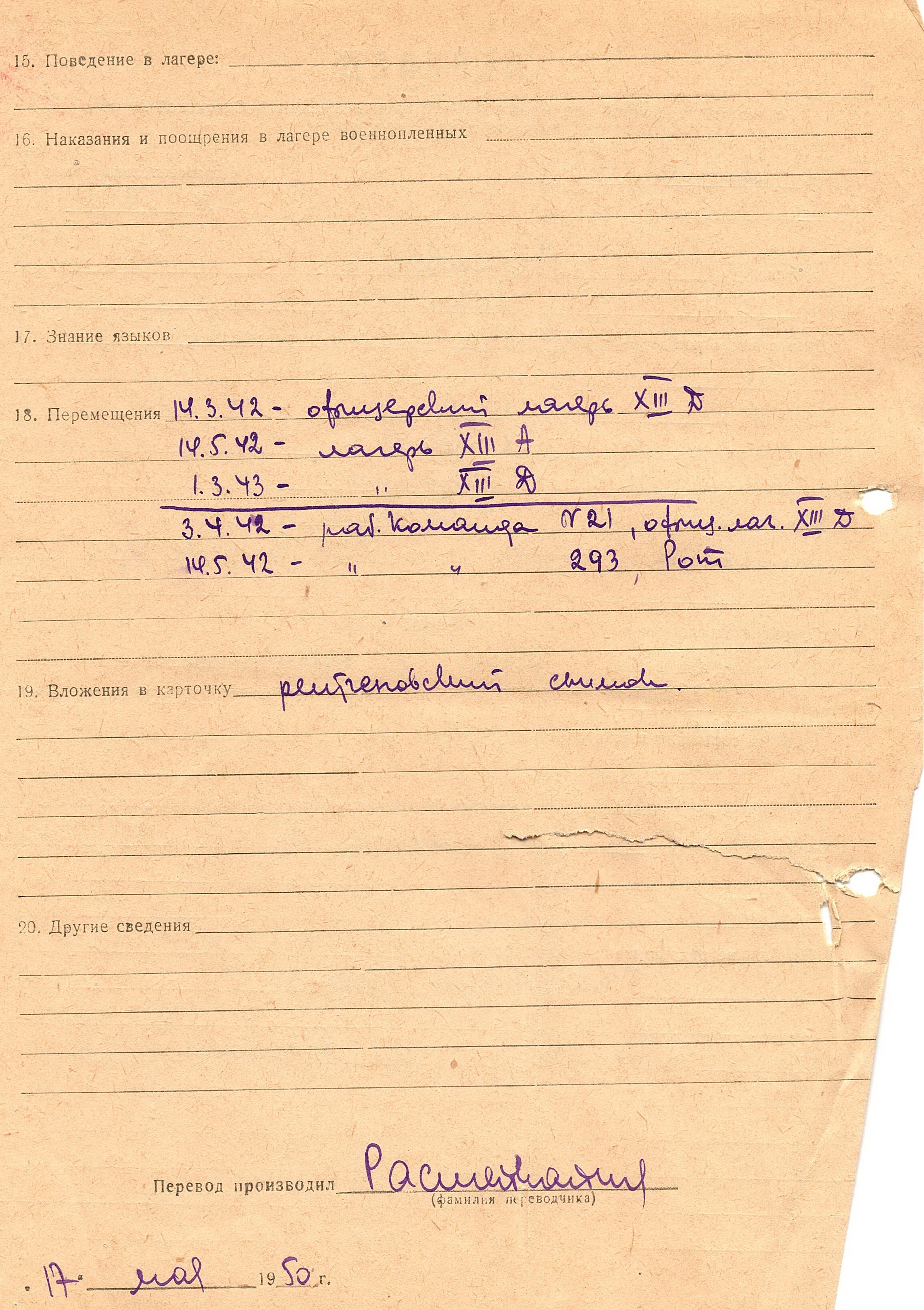 Военнопленные, трофейные карточки. Киевская обл.