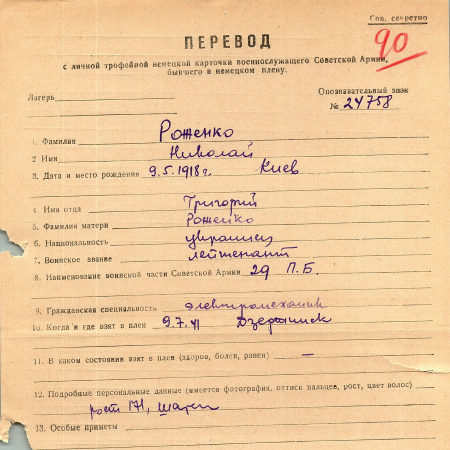 Военнопленные, трофейные карточки. Киевская обл.