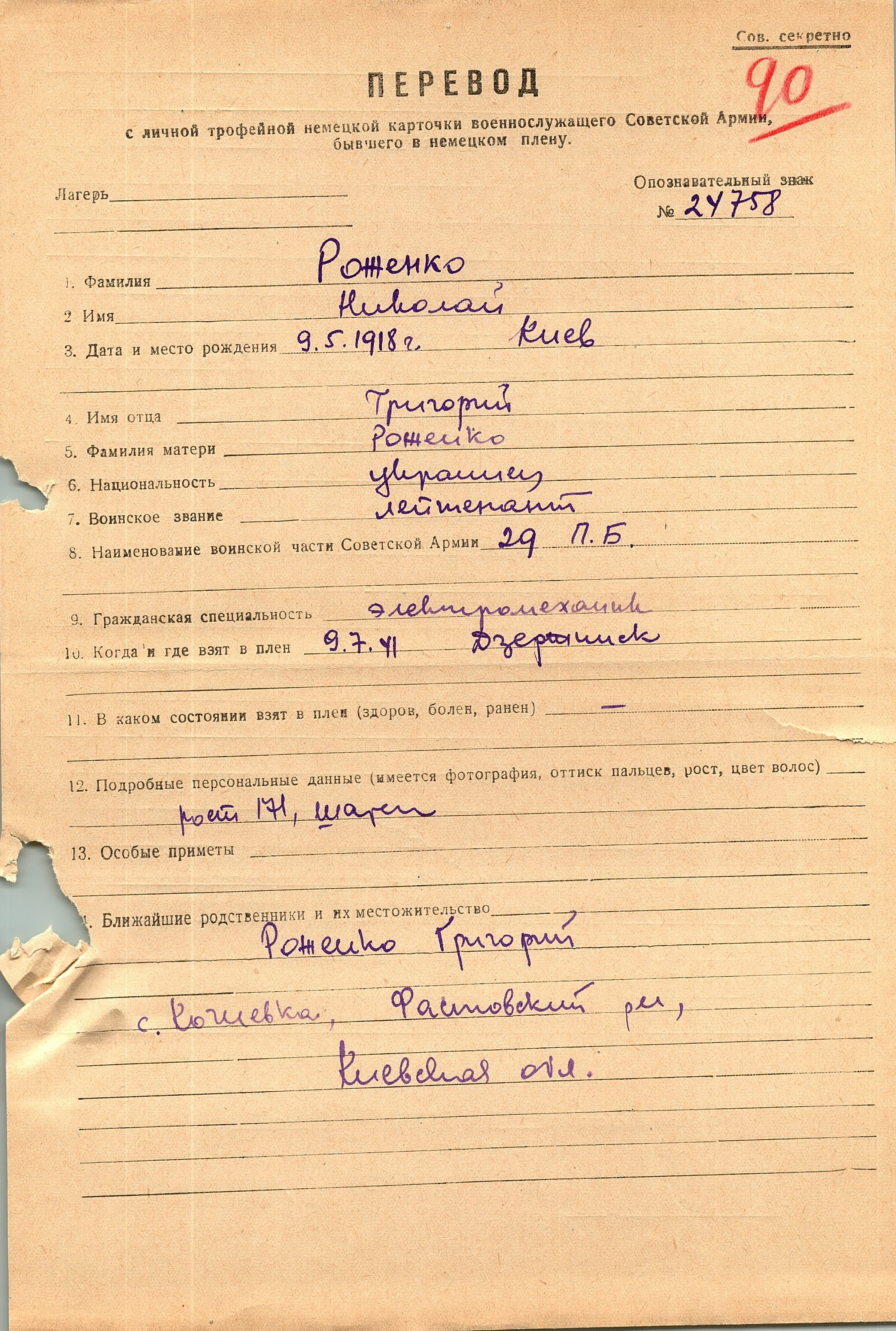 Военнопленные, трофейные карточки. Киевская обл.