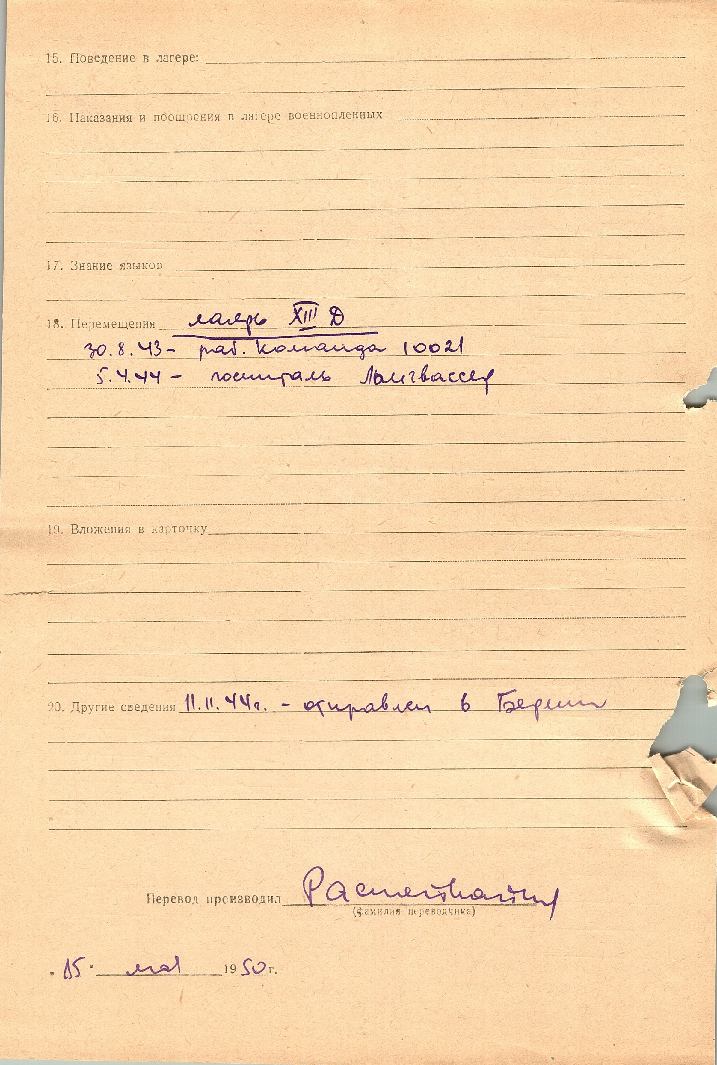Военнопленные, трофейные карточки. Киевская обл.