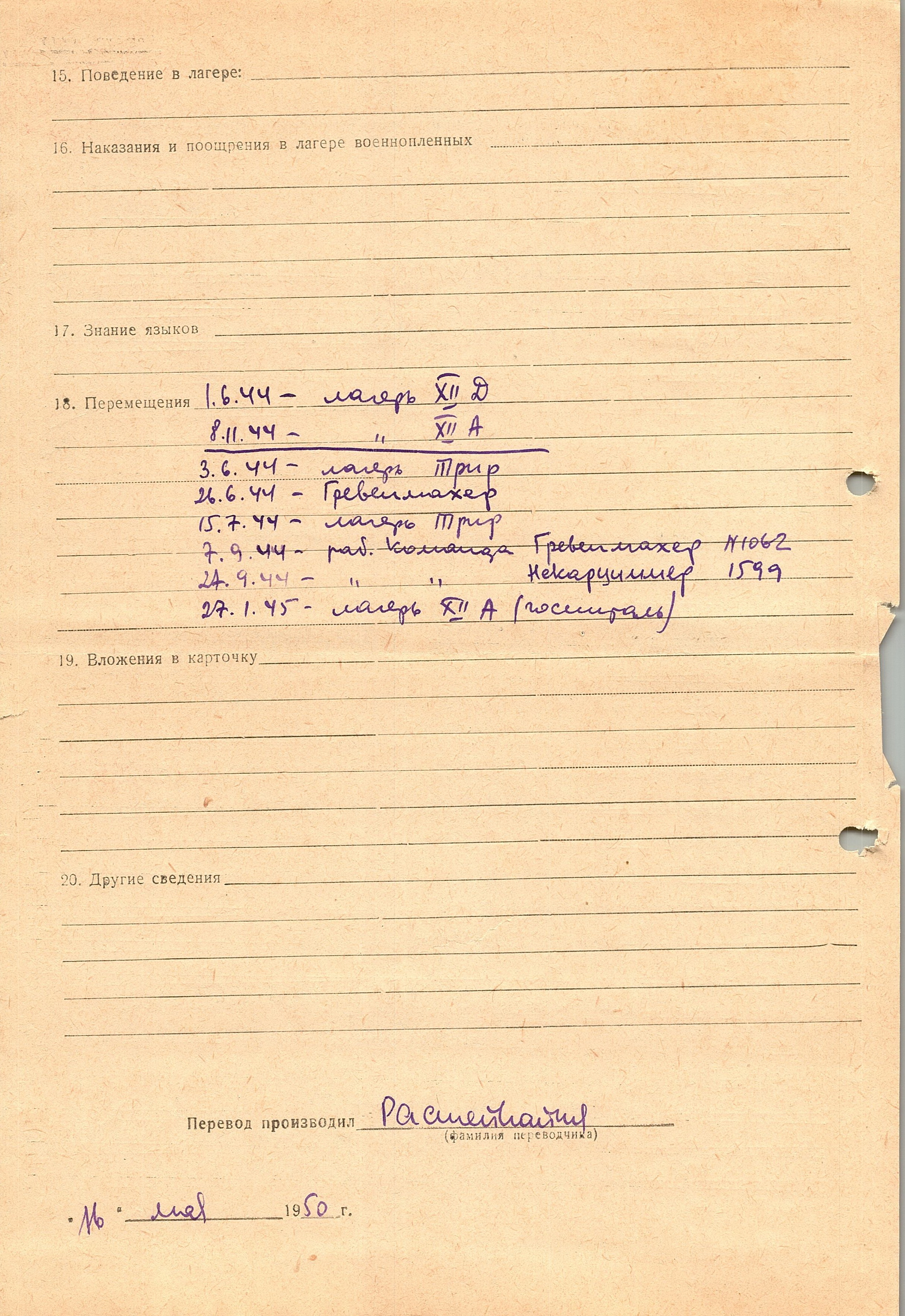 Военнопленные, трофейные карточки. Киевская обл.