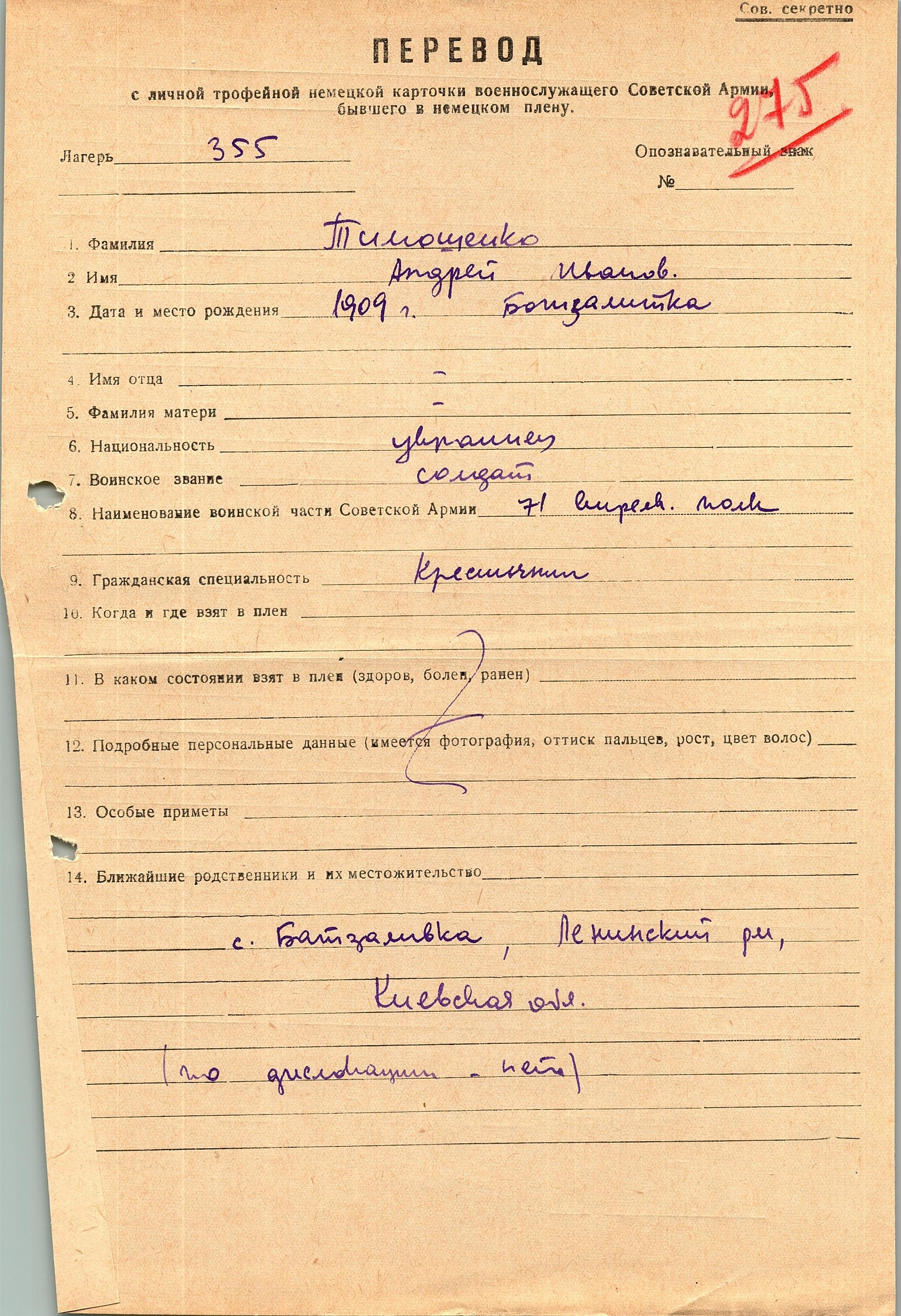 Военнопленные, трофейные карточки. Киевская обл.