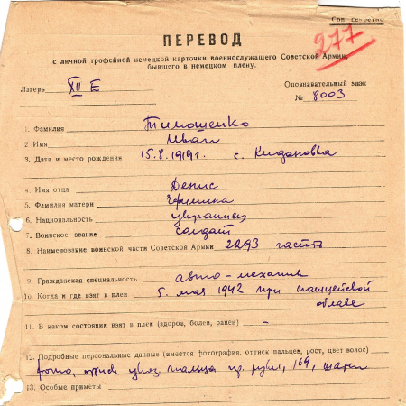 Военнопленные, трофейные карточки. Киевская обл.