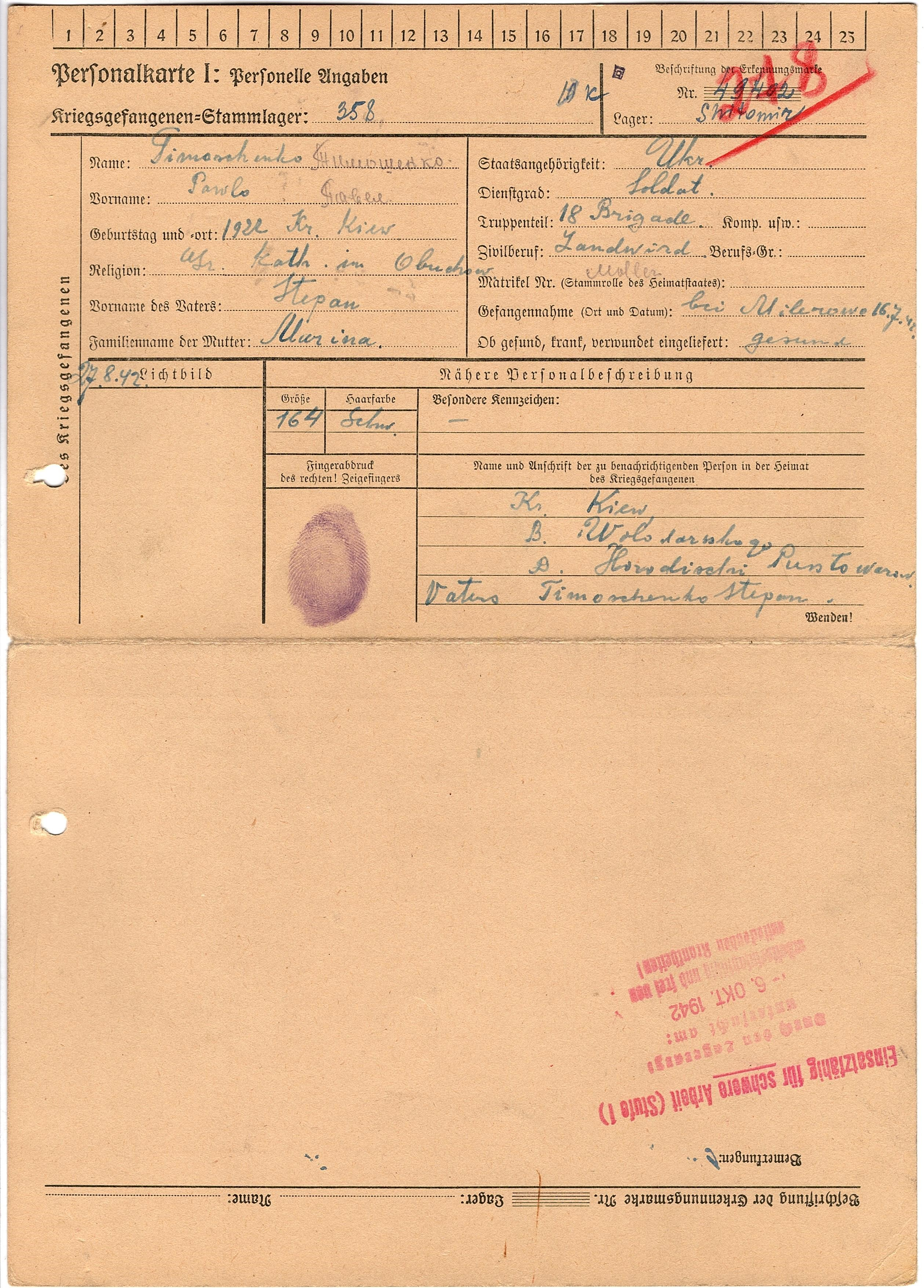Военнопленные, трофейные карточки. Киевская обл.