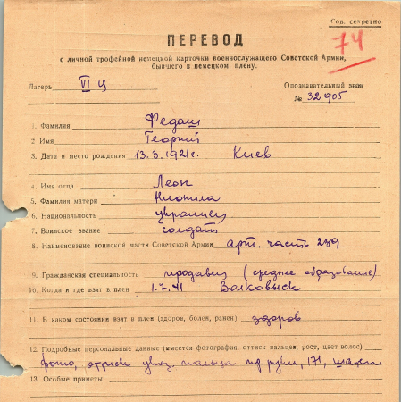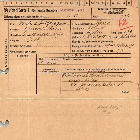Военнопленные, трофейные карточки. Киевская обл.