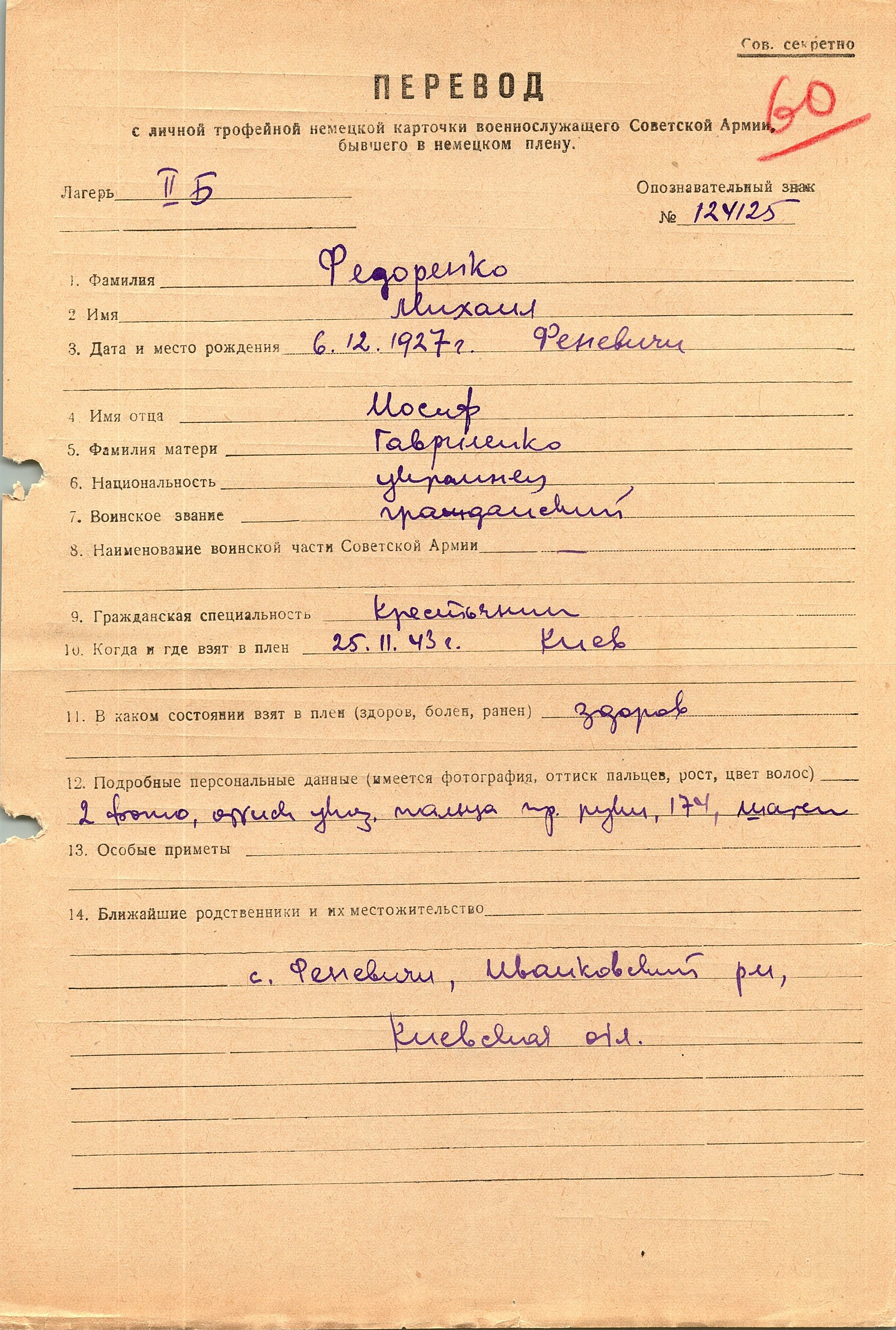 Военнопленные, трофейные карточки. Киевская обл.