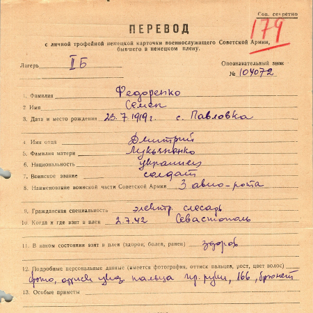 Военнопленные, трофейные карточки. Киевская обл.