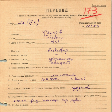 Военнопленные, трофейные карточки. Киевская обл.